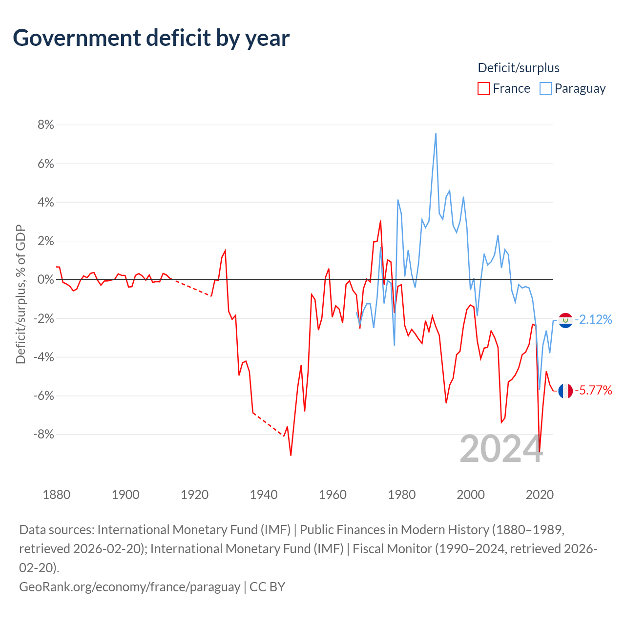 - International Monetary Fund (IMF) | Public Finances in Modern History (1880–1989, retrieved 2026-02-20)