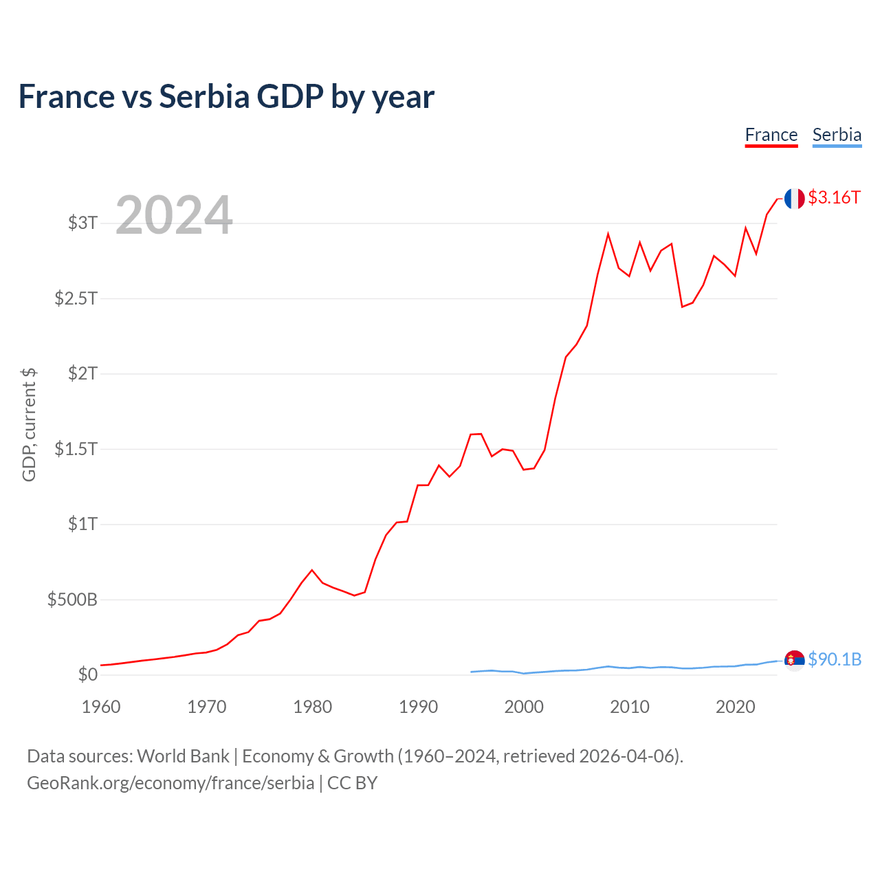 France vs Serbia GDP by year