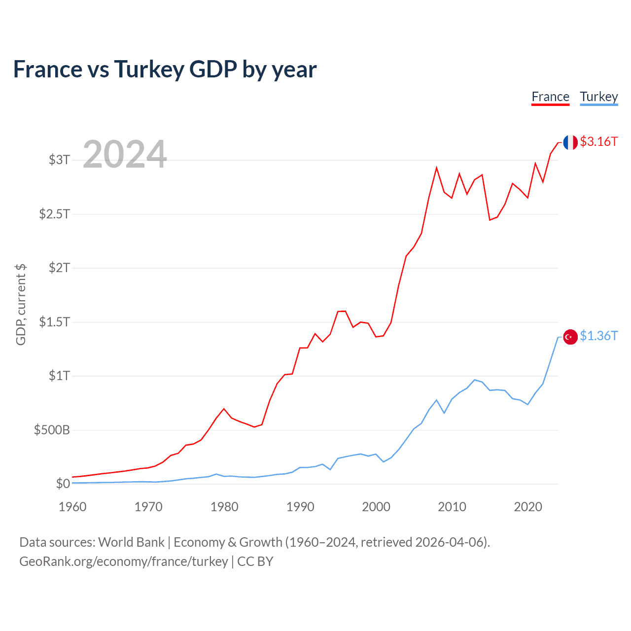 France vs Turkey GDP by year
