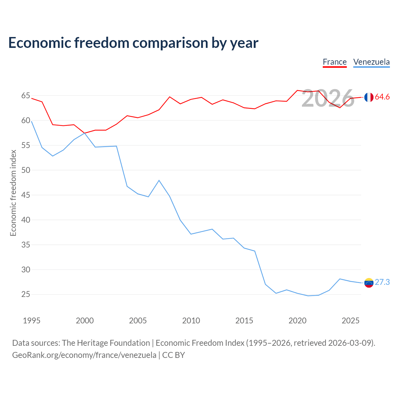 Data sources: The Heritage Foundation | Economic Freedom Index (1995–2026, retrieved 2026-03-09).
