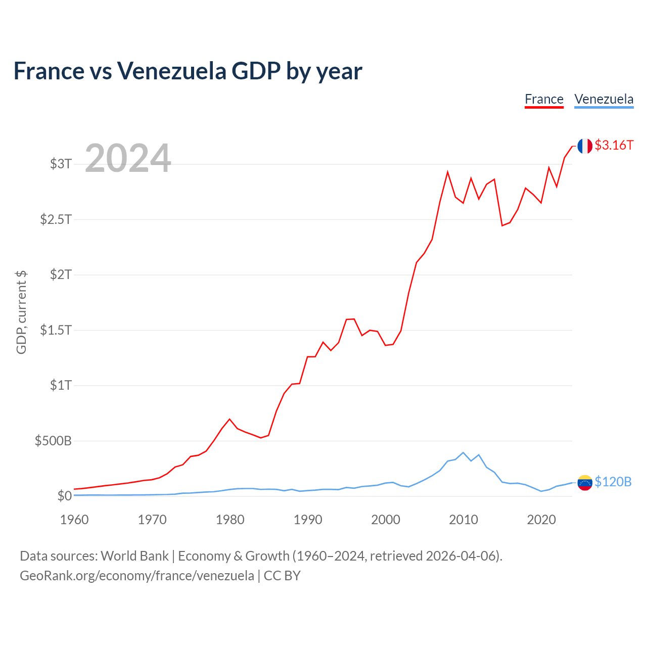 France vs Venezuela GDP by year