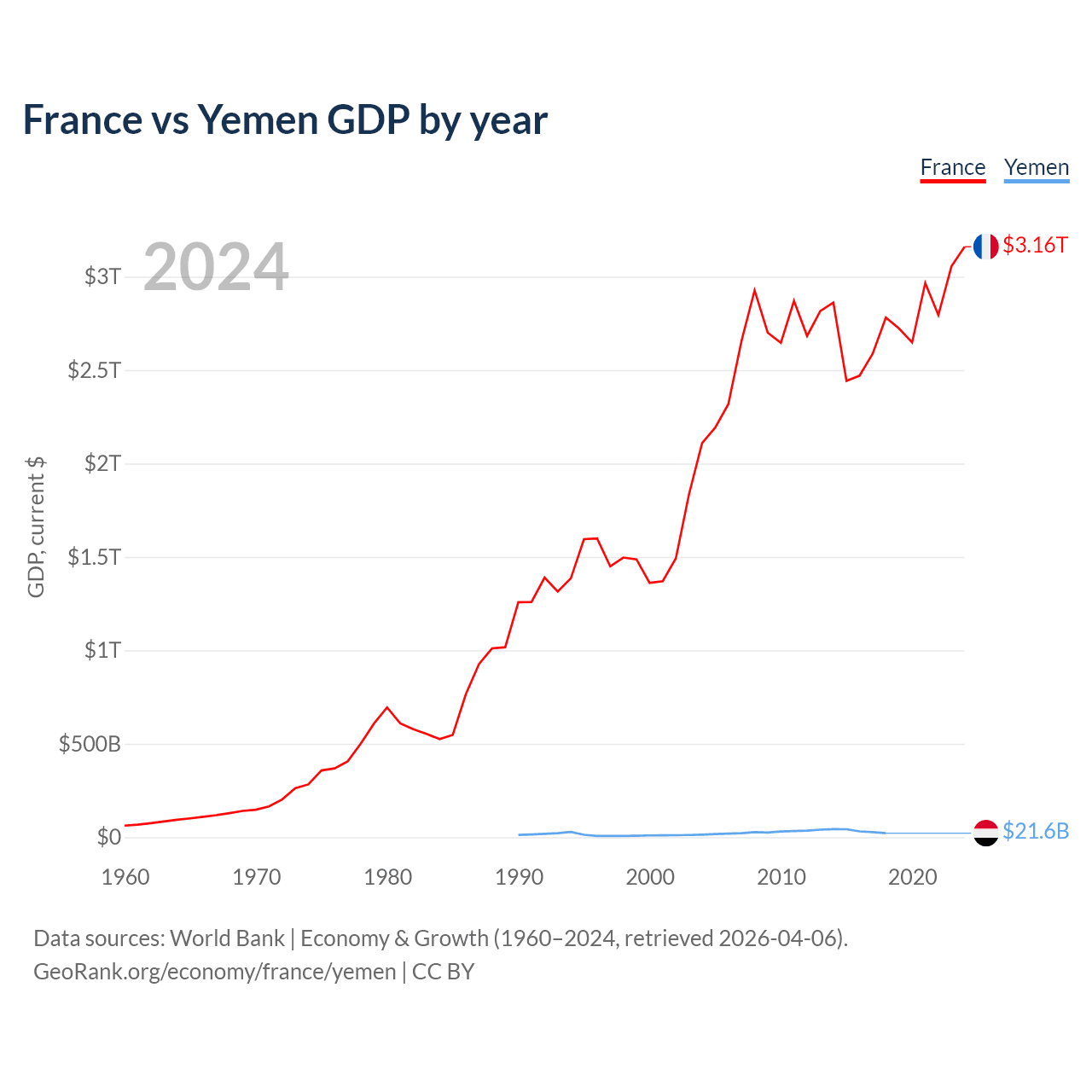 France vs Yemen GDP by year