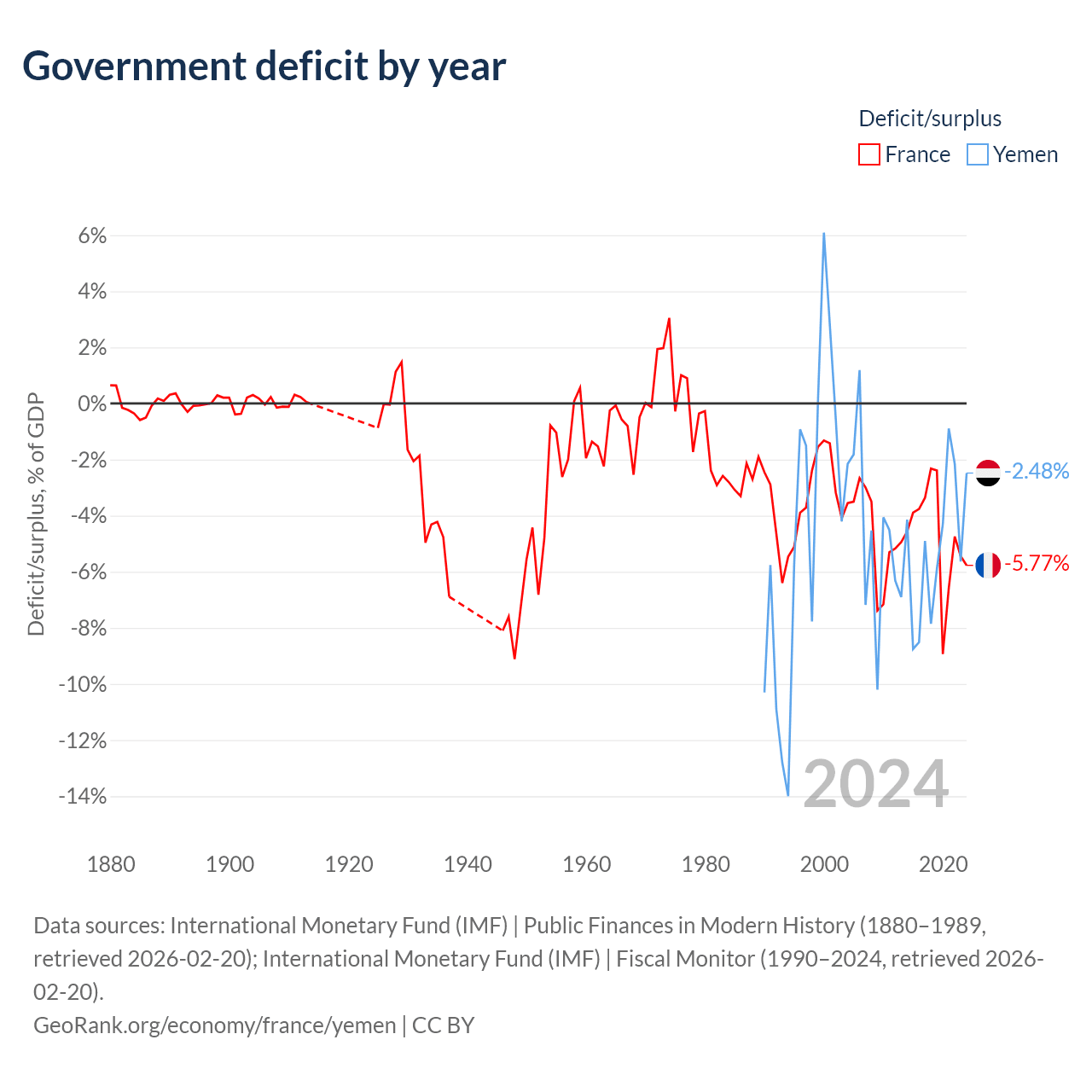 - International Monetary Fund (IMF) | Public Finances in Modern History (1880–1998, retrieved 2026-02-20)