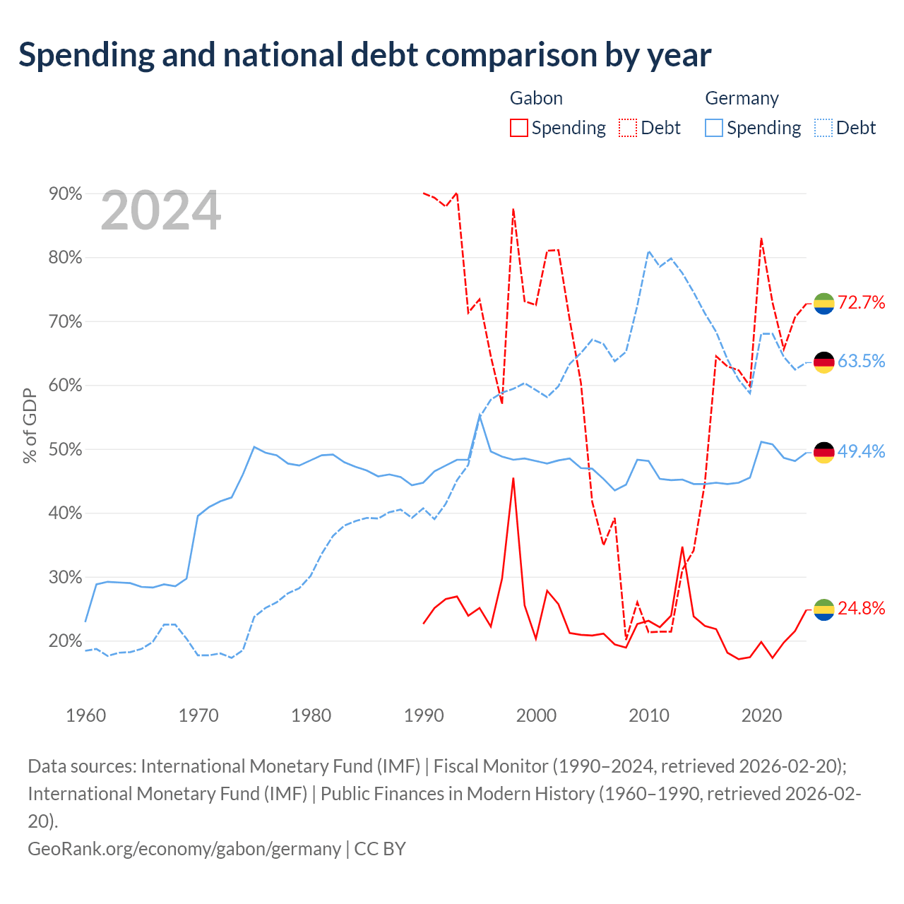 - International Monetary Fund (IMF) | Fiscal Monitor (1990–2024, retrieved 2026-02-20)