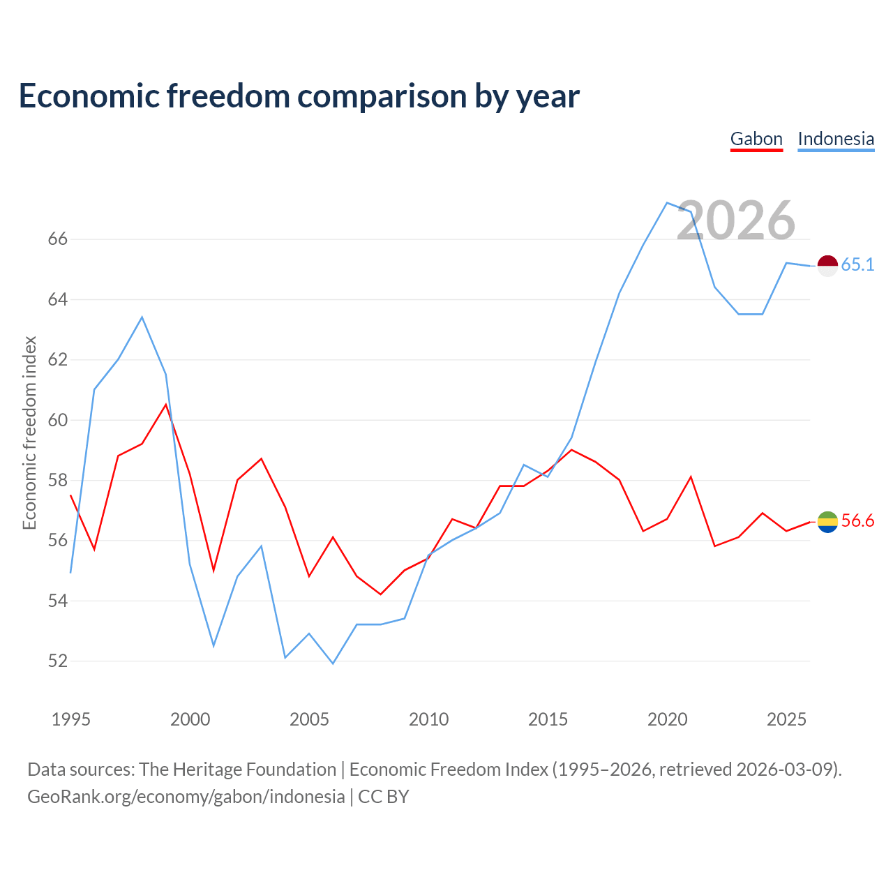 Data sources: The Heritage Foundation | Economic Freedom Index (1995–2026, retrieved 2026-03-09).