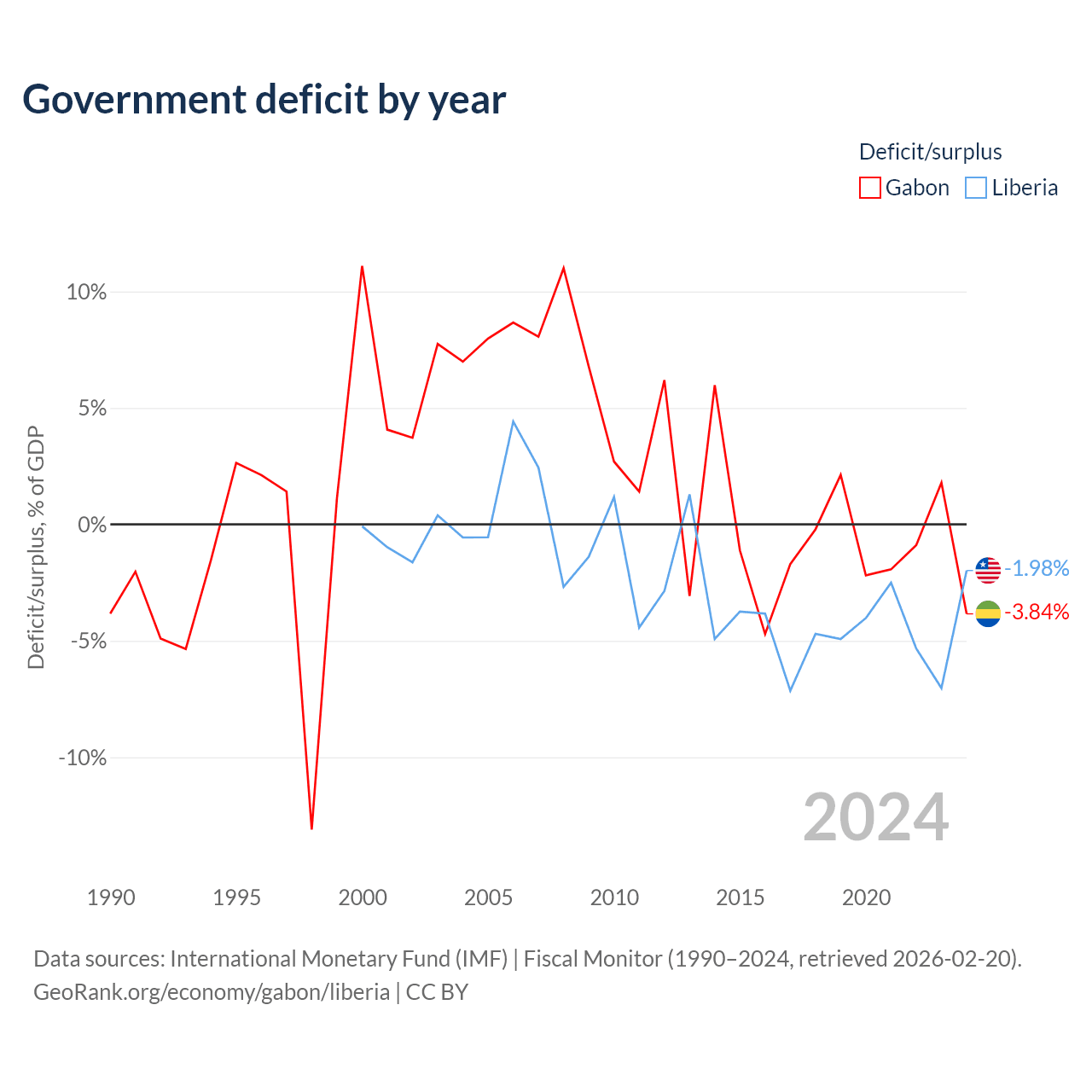 - International Monetary Fund (IMF) | Fiscal Monitor (1990–2024, retrieved 2026-02-20)