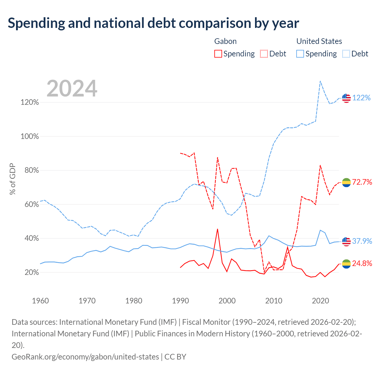 - International Monetary Fund (IMF) | Fiscal Monitor (1990–2024, retrieved 2026-02-20)