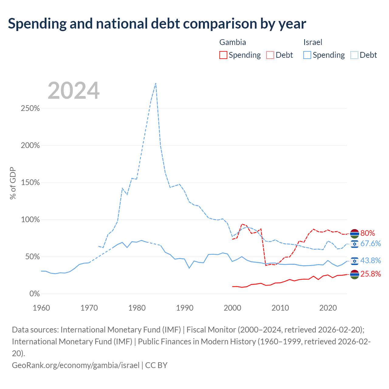 The Gambia has $1.92B in government debt (80% of GDP), compared to $366B (67.6% of GDP) in Israel.