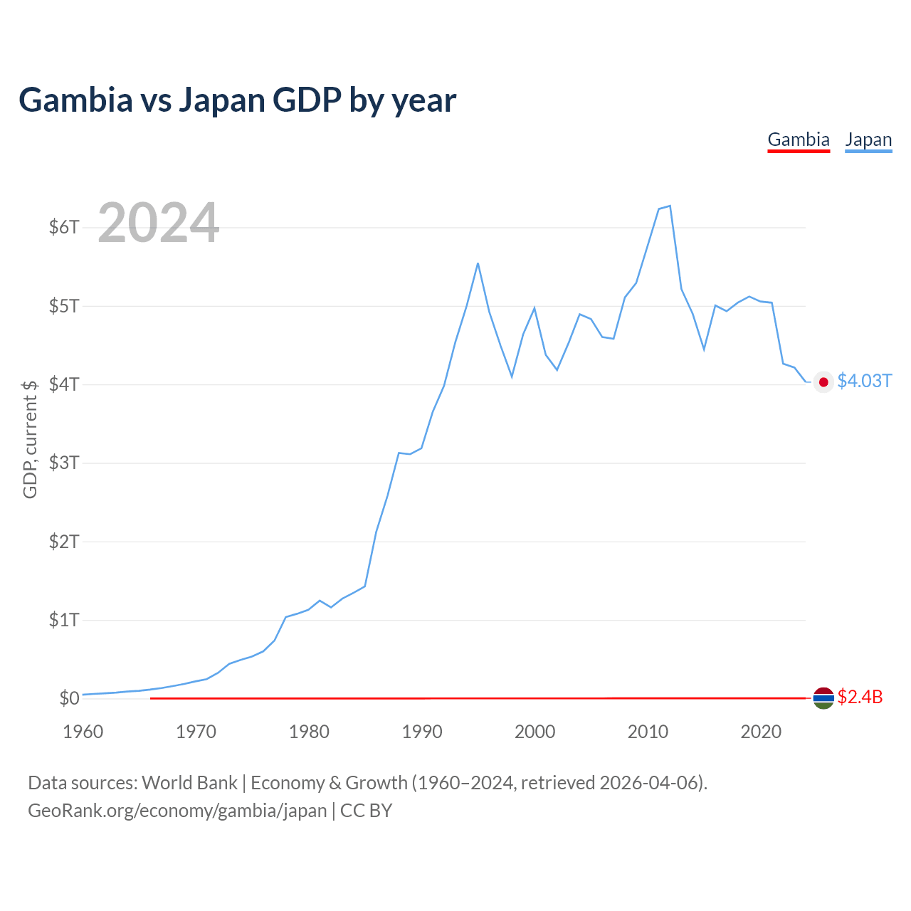 Gambia vs Japan GDP by year