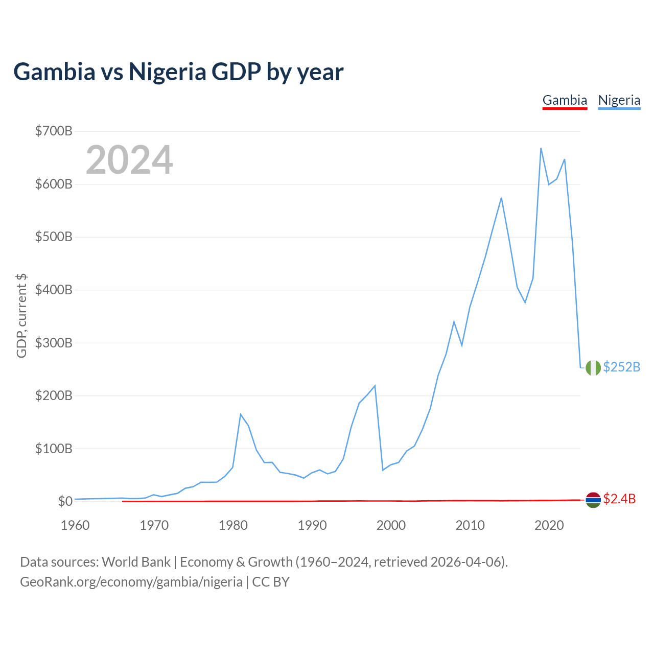 Gambia vs Nigeria GDP by year