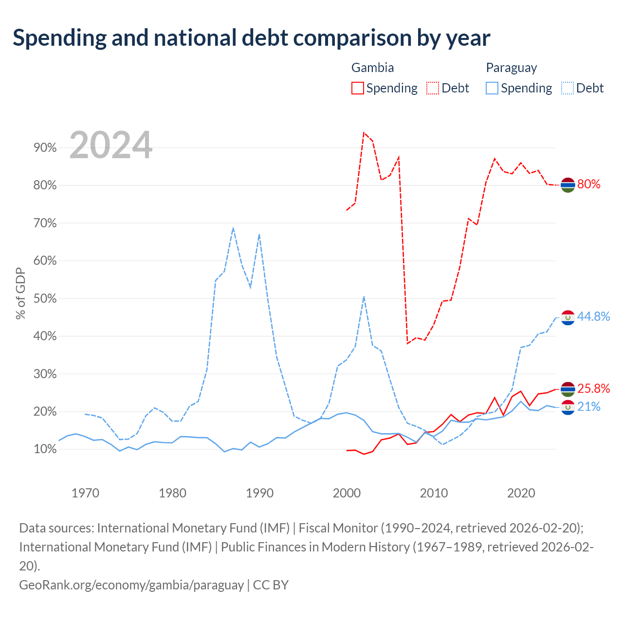 The Gambia has $1.92B in government debt (80% of GDP), compared to $19.9B (44.8% of GDP) in Paraguay.