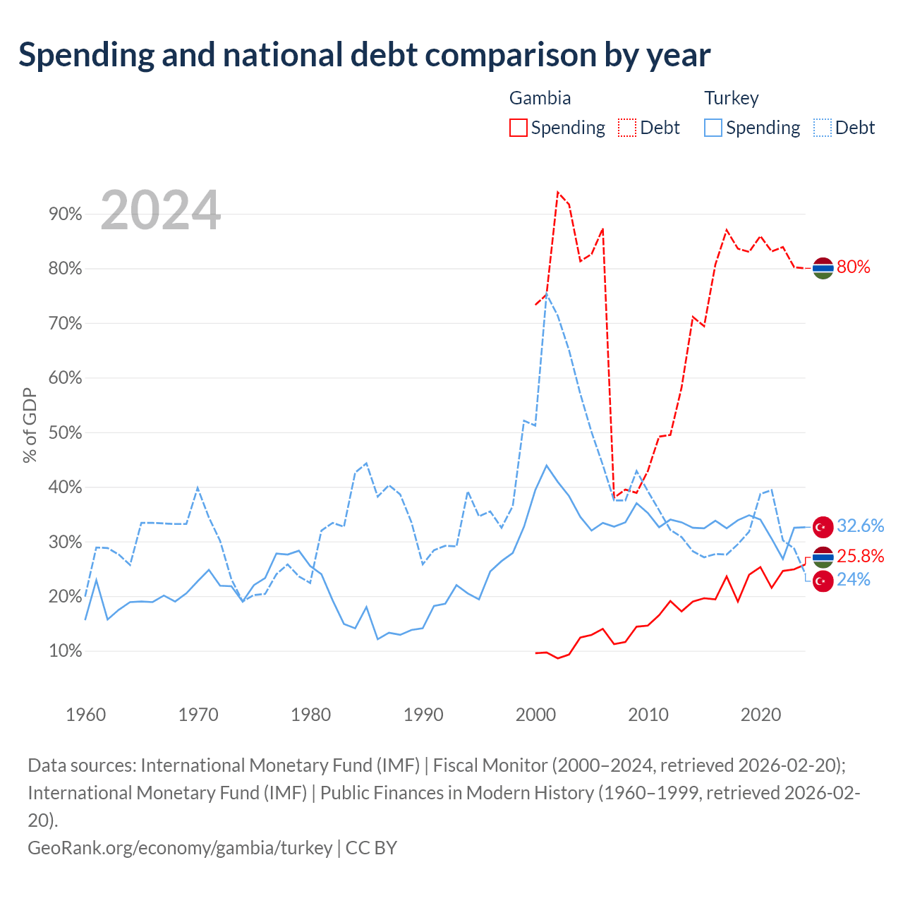 The Gambia has $1.92B in government debt (80% of GDP), compared to $327B (24% of GDP) in Turkey.