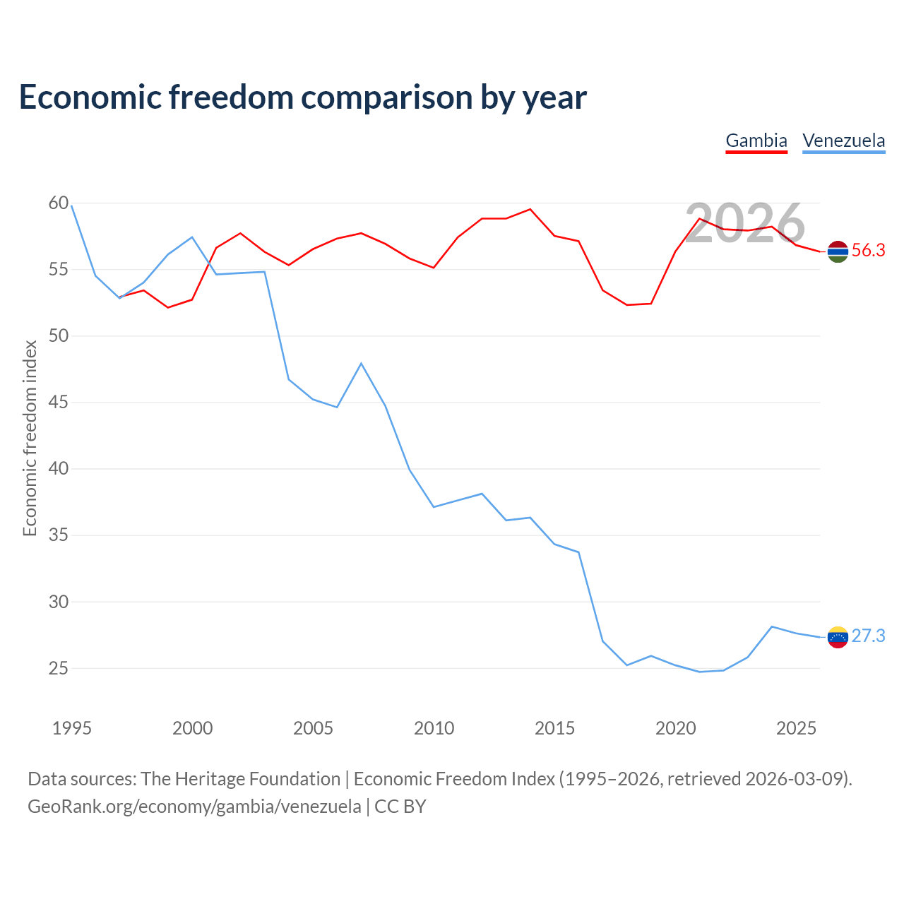 Data sources: The Heritage Foundation | Economic Freedom Index (1995–2026, retrieved 2026-03-09).