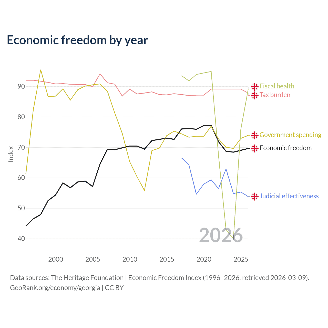 - The Heritage Foundation | Economic Freedom Index (1996–2026, retrieved 2026-03-09)
