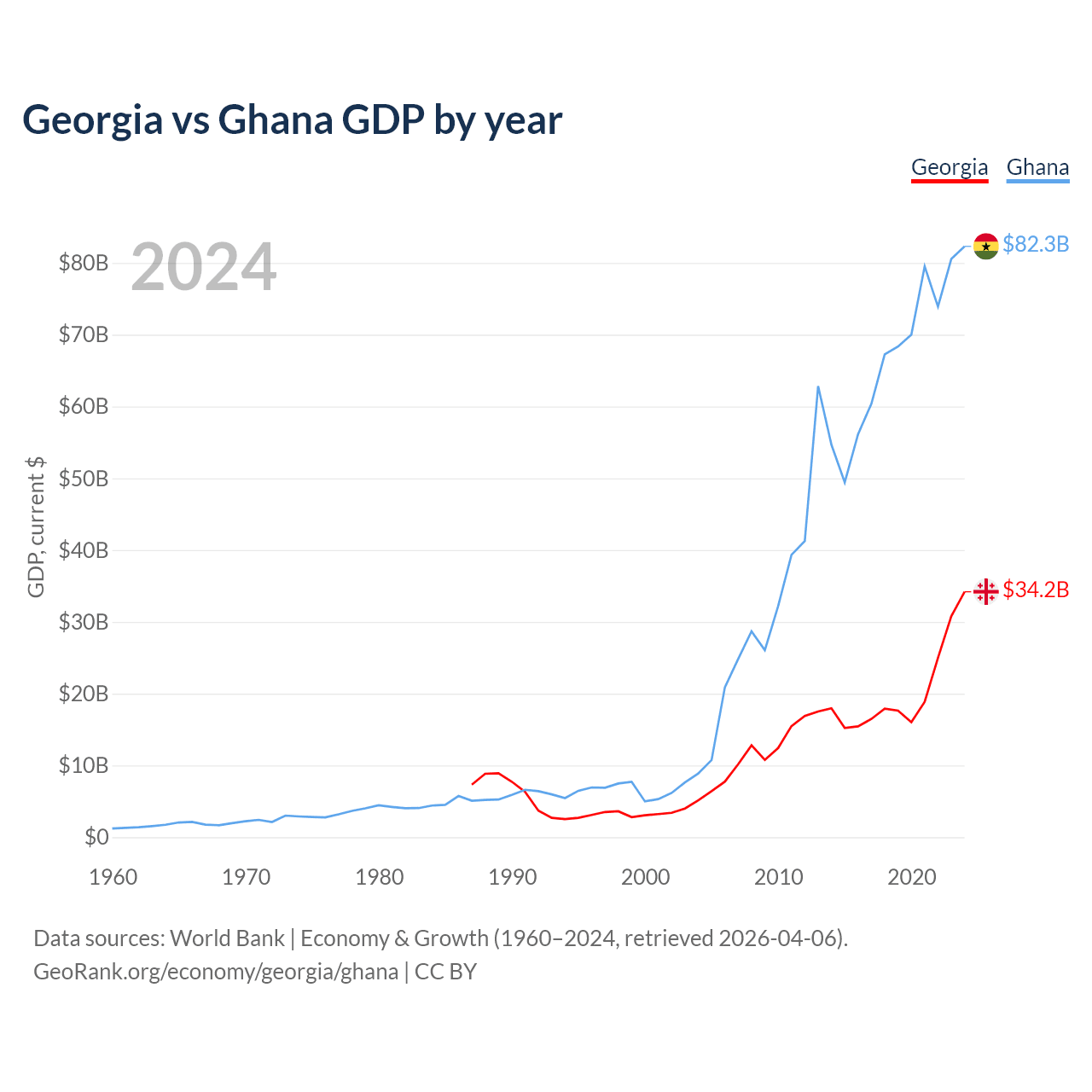 Georgia vs Ghana GDP by year