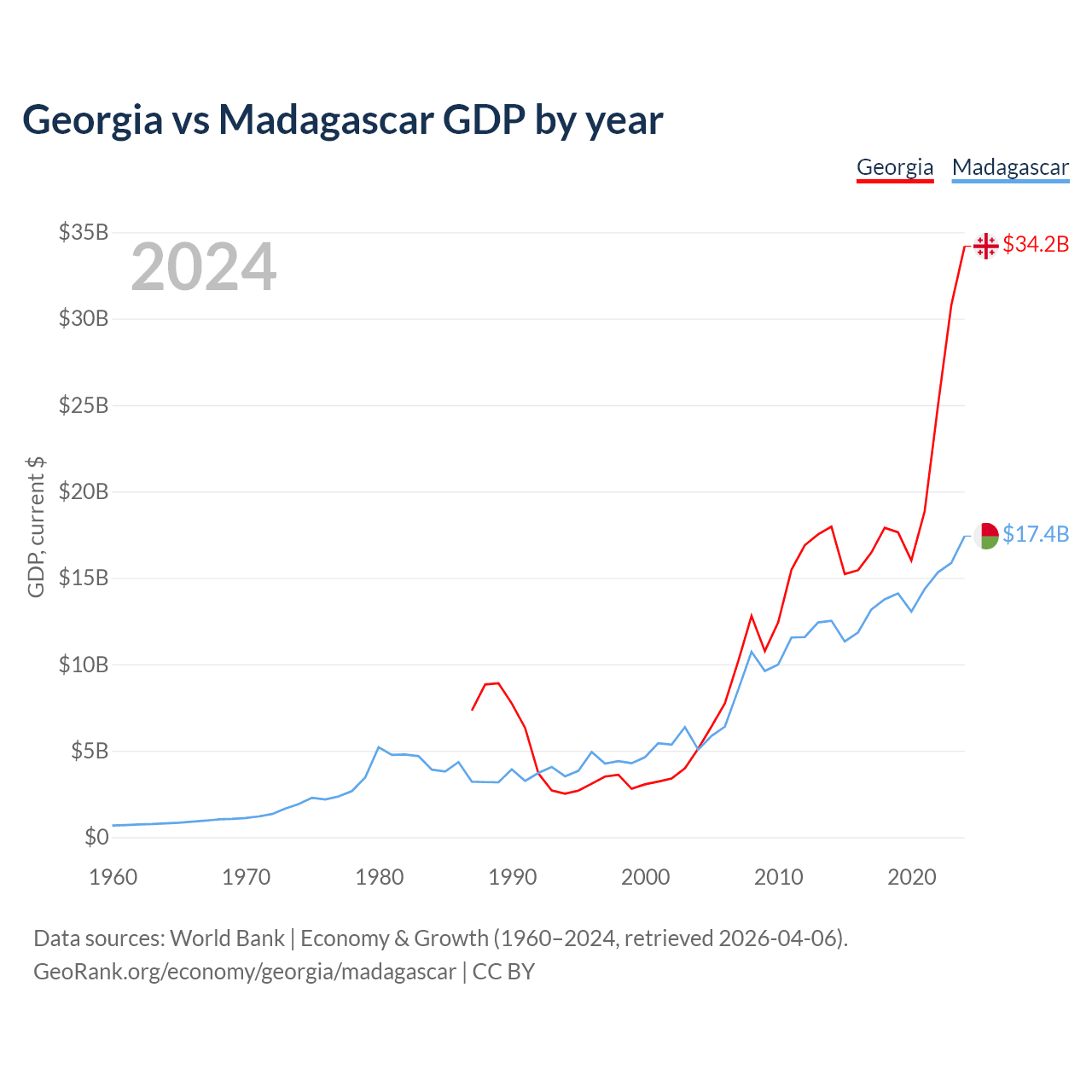 Georgia vs Madagascar GDP by year