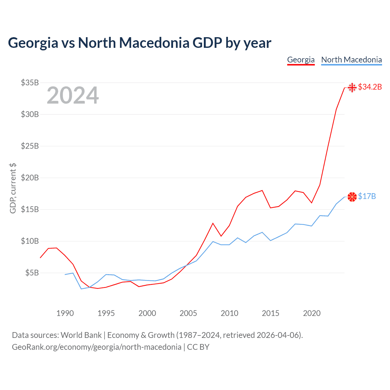 Georgia vs North Macedonia GDP by year
