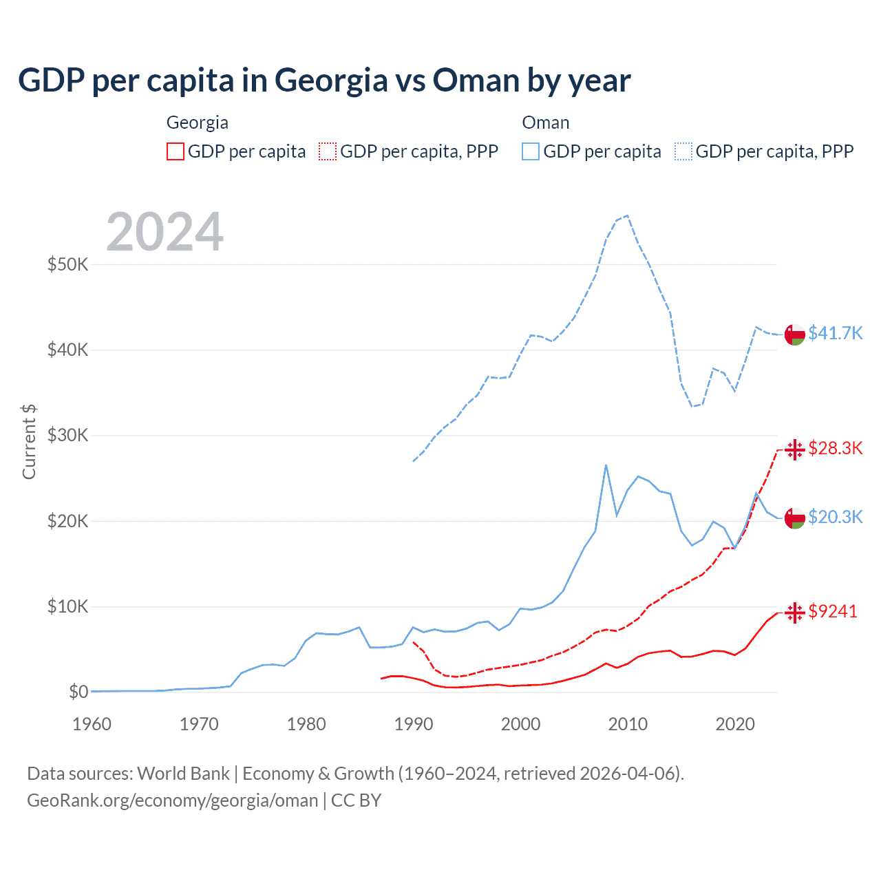GDP per capita in Georgia vs Oman by year