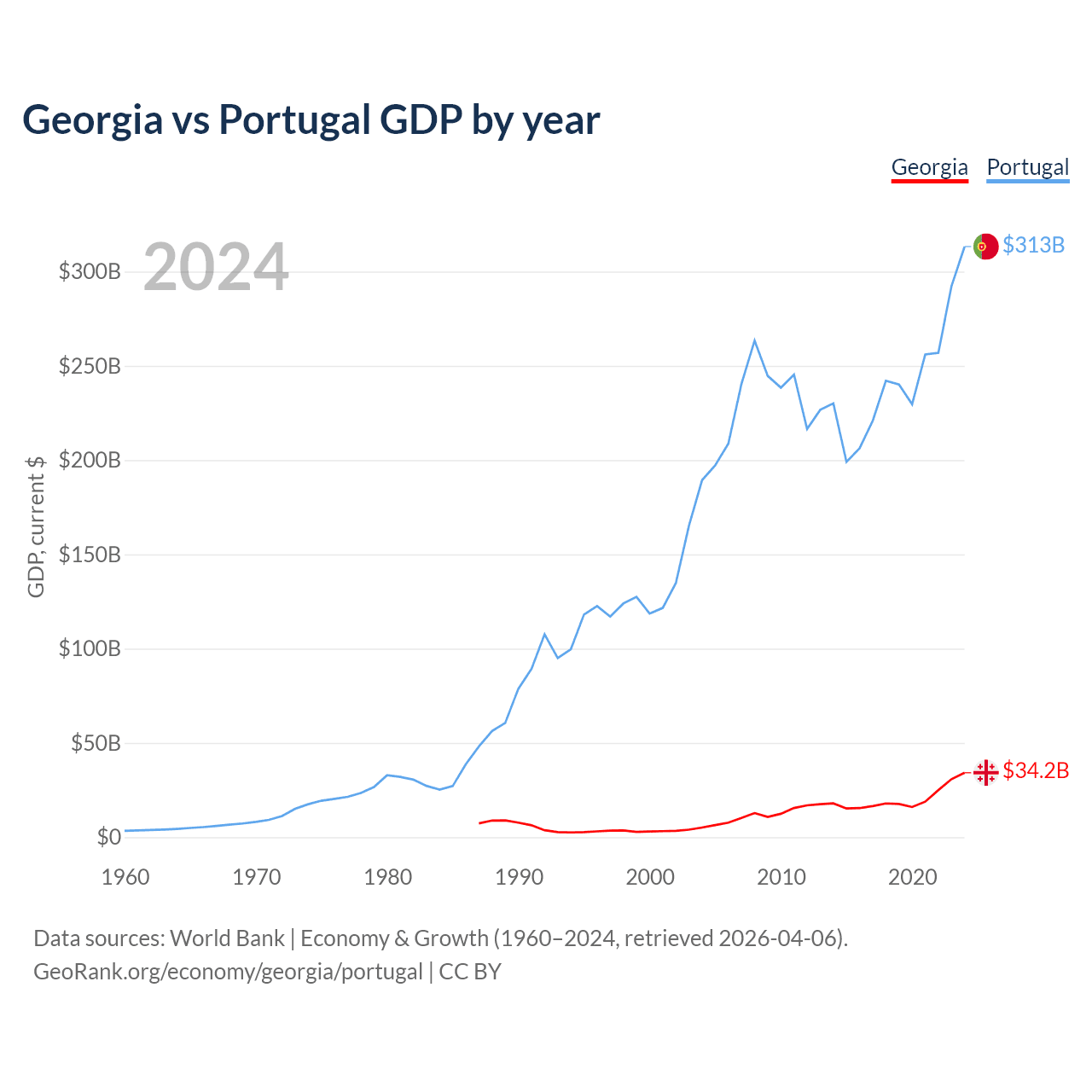 Georgia vs Portugal GDP by year
