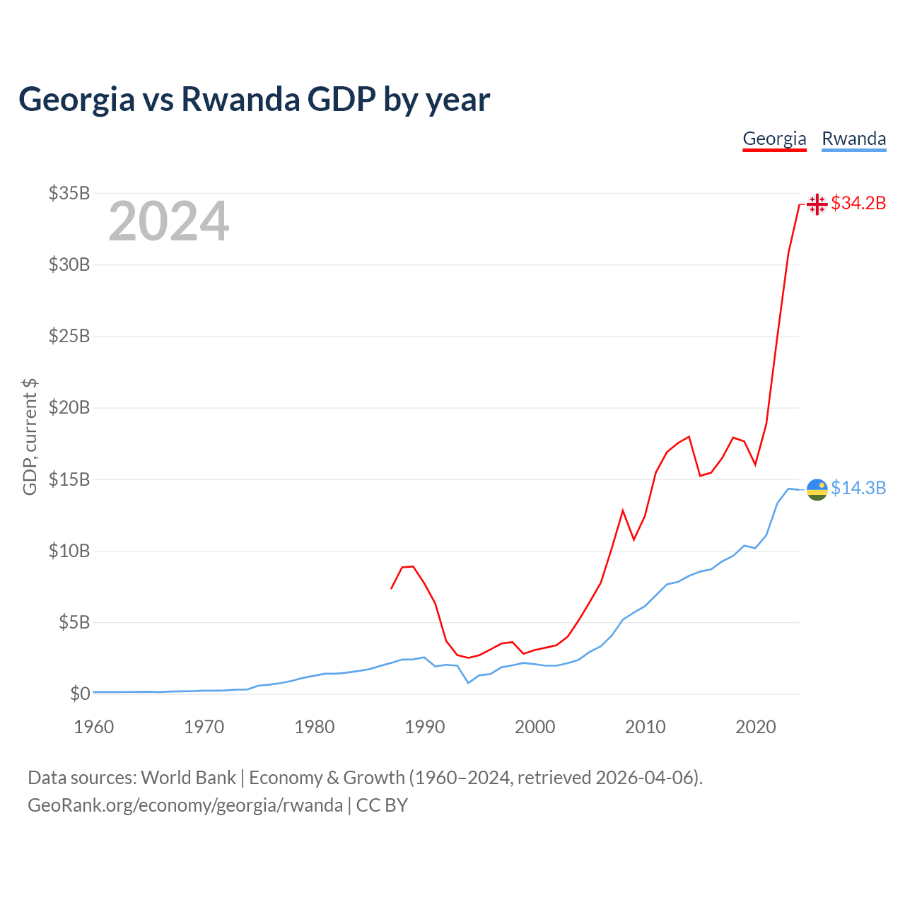 Georgia vs Rwanda GDP by year