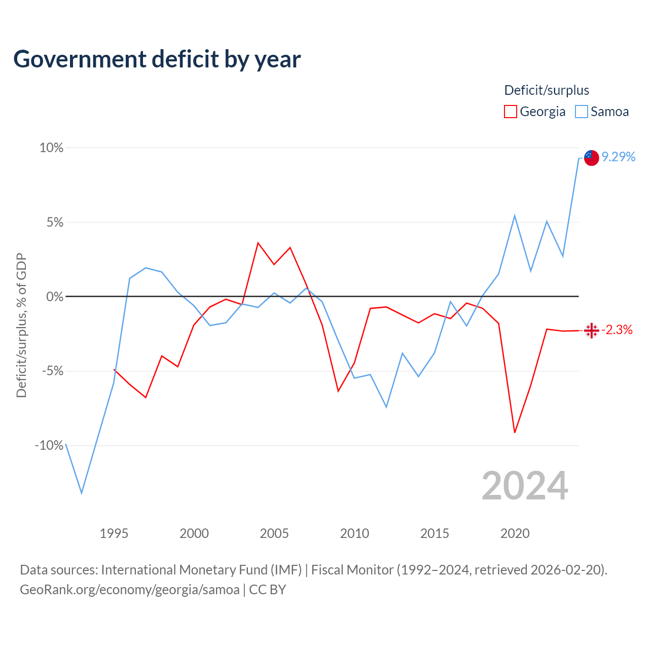 Georgia vs Samoa GDP by year