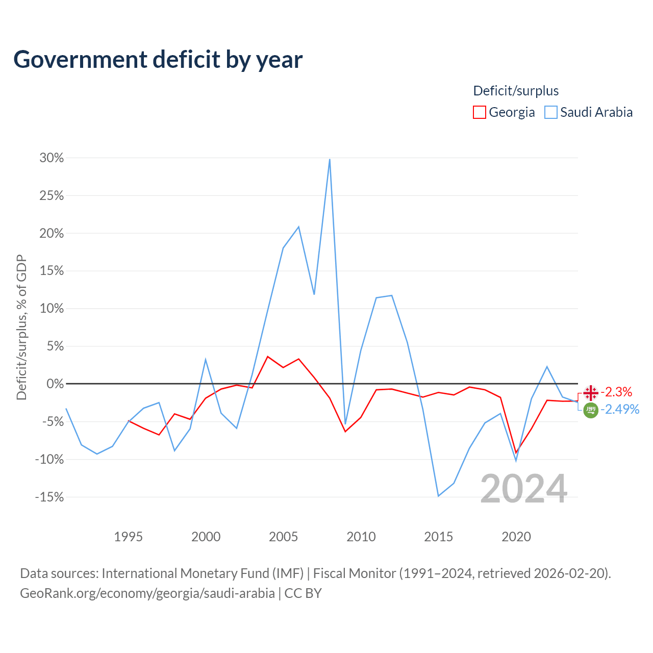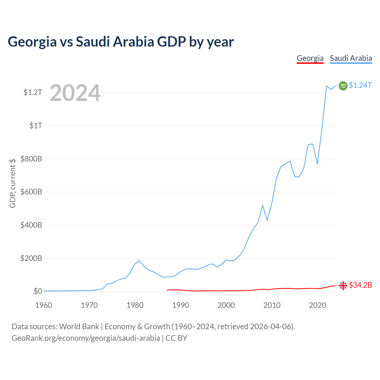 Georgia vs Saudi Arabia GDP by year