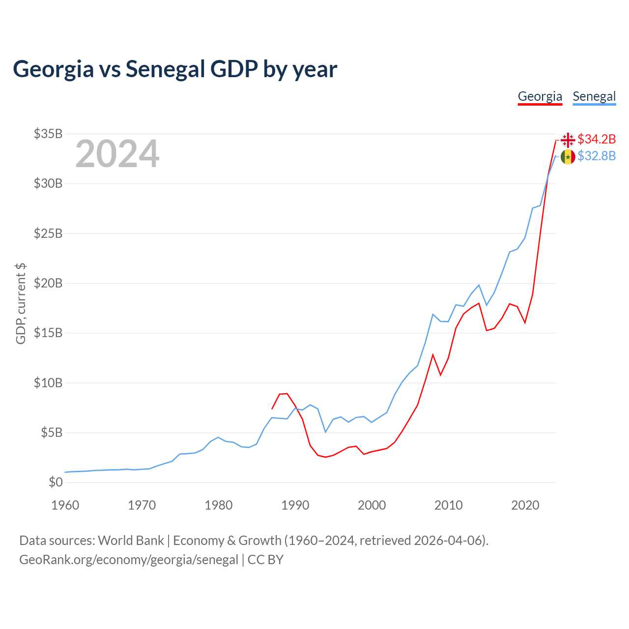 Georgia vs Senegal GDP by year