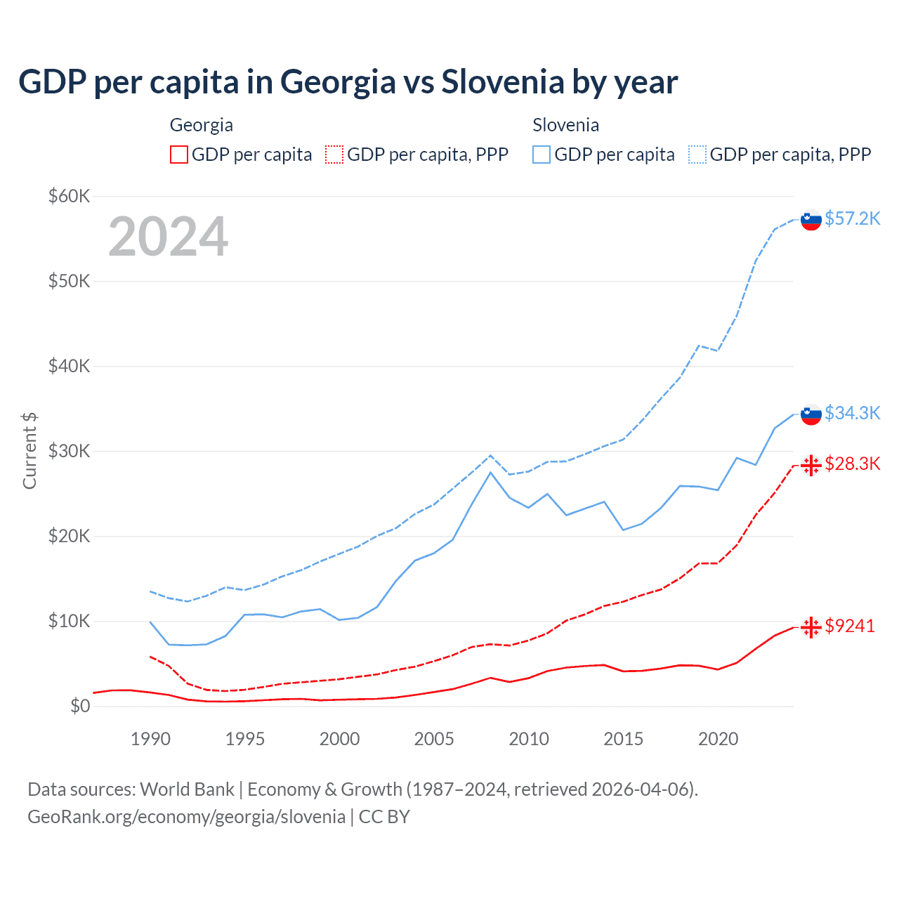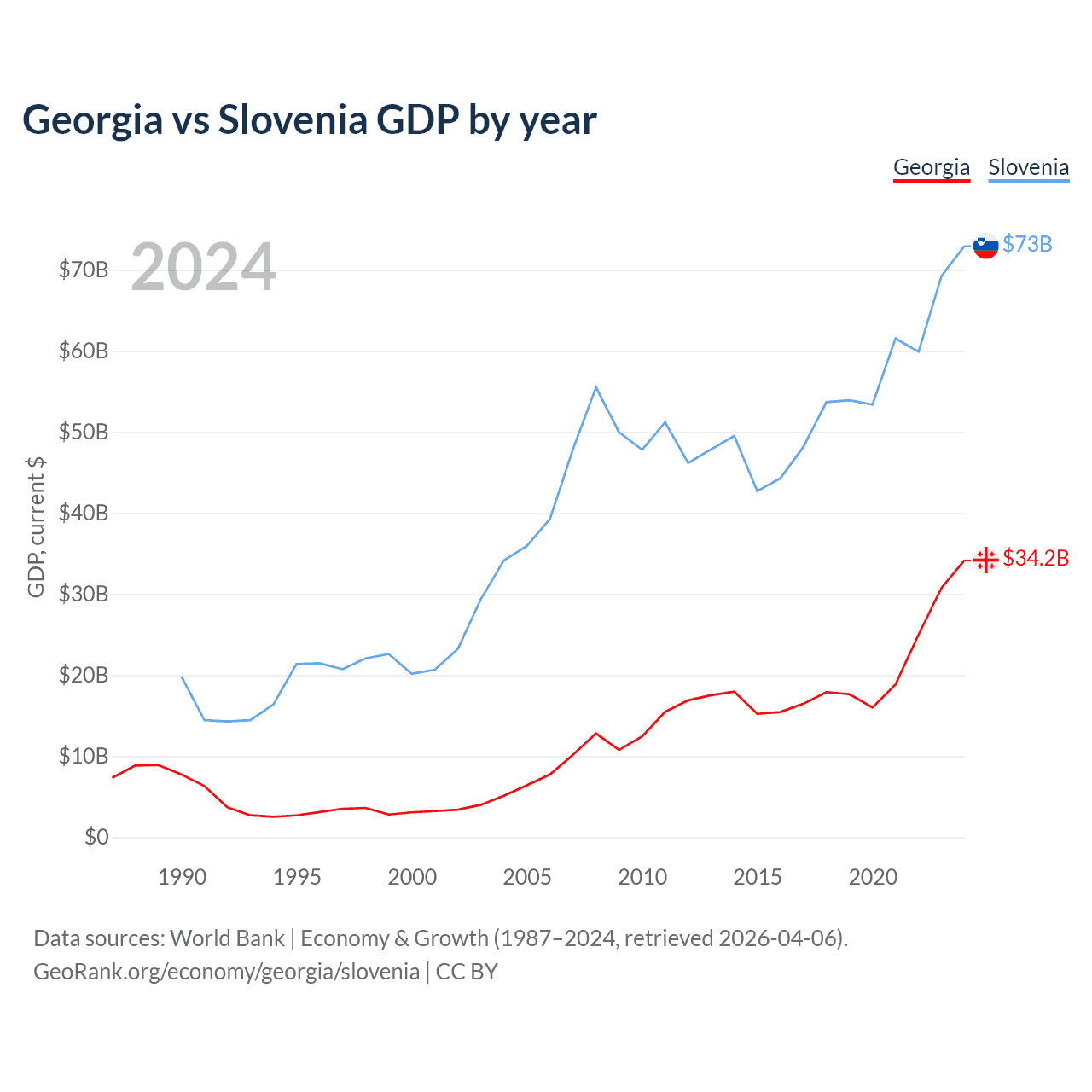 Georgia vs Slovenia GDP by year
