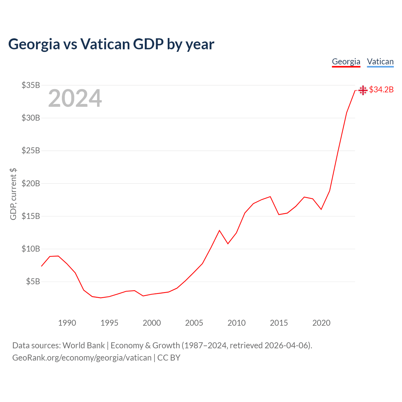 Georgia vs Vatican GDP by year