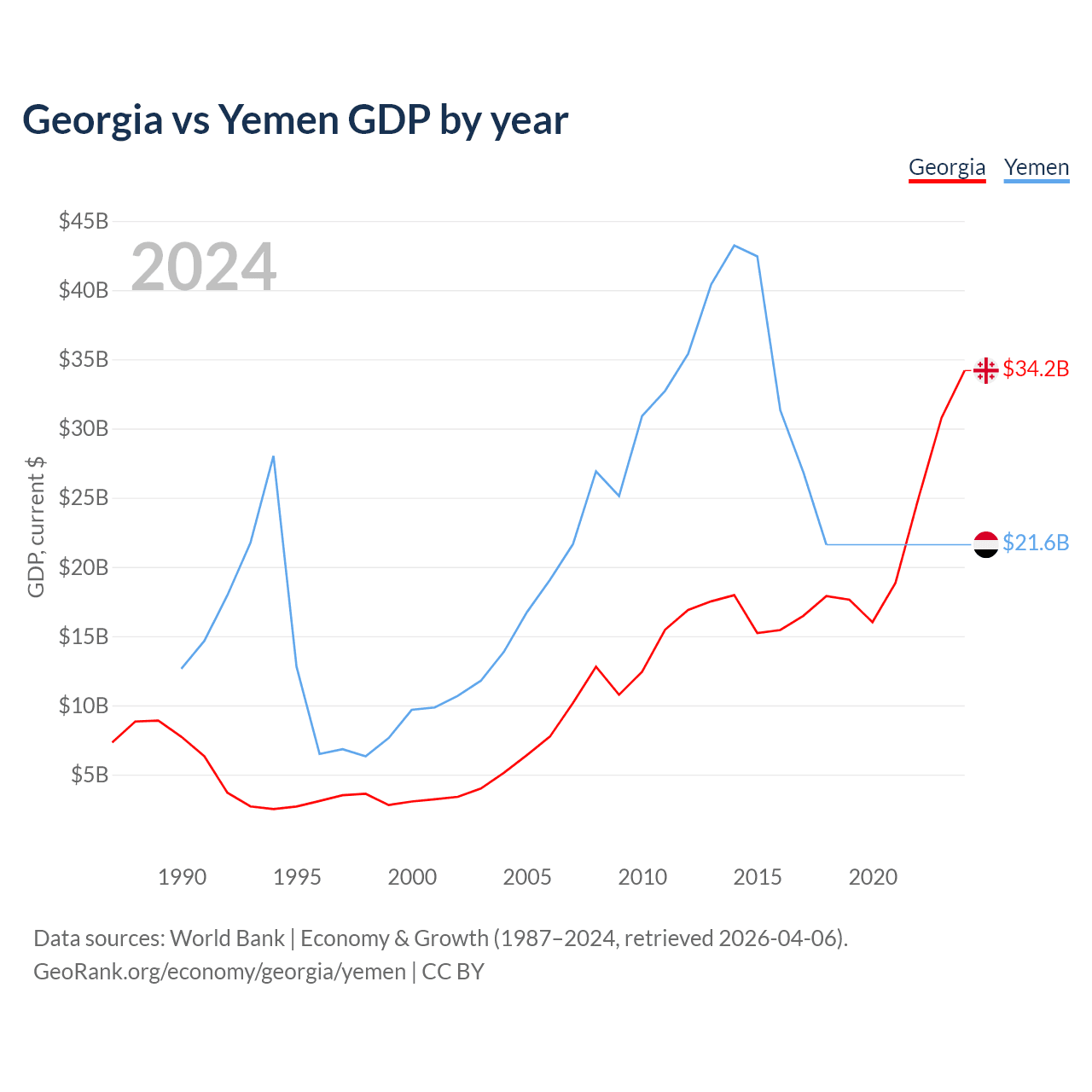 Georgia vs Yemen GDP by year