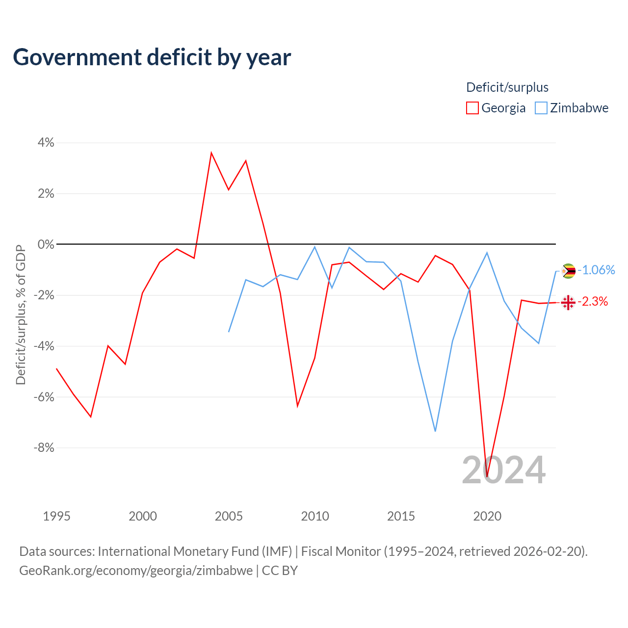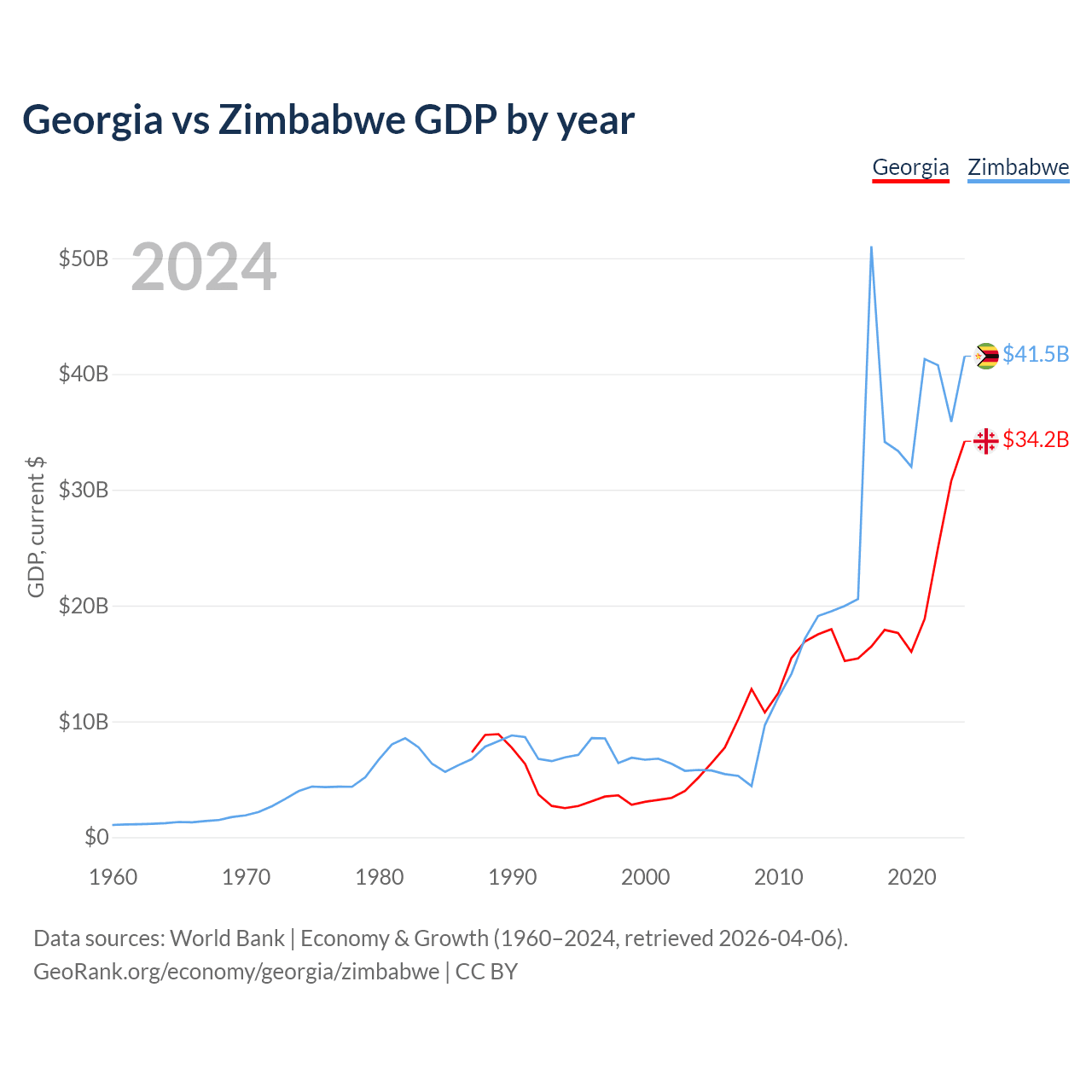 Georgia vs Zimbabwe GDP by year