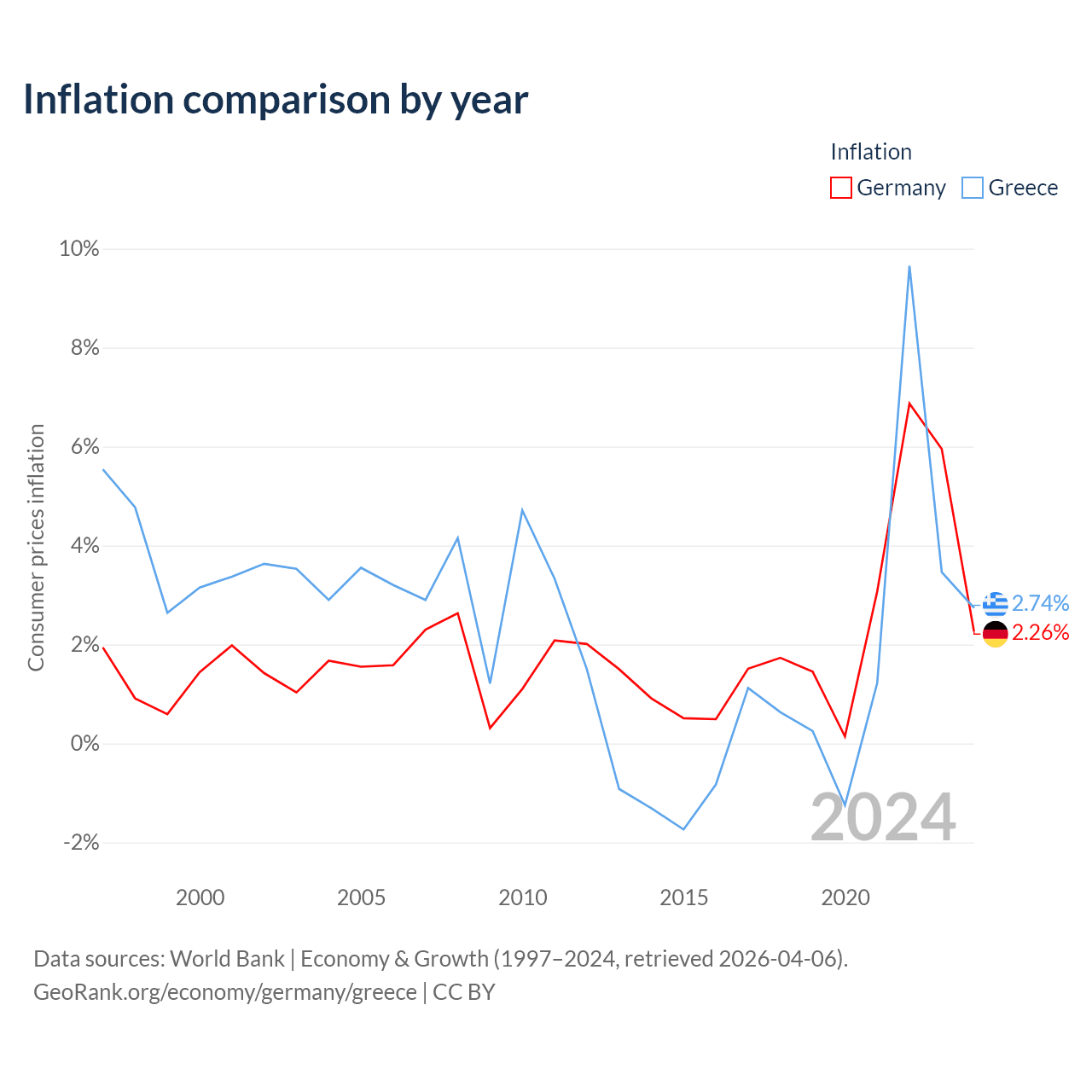 Data sources: World Bank | Economy & Growth (1960–2024, retrieved 2026-04-06).