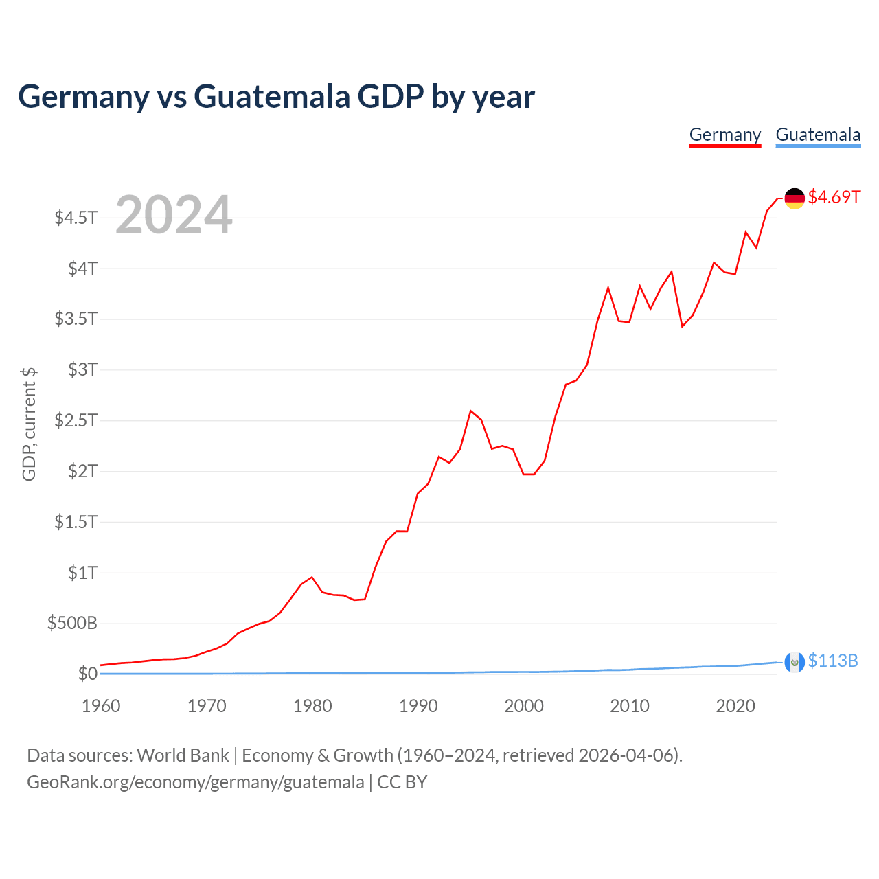 Germany vs Guatemala GDP by year