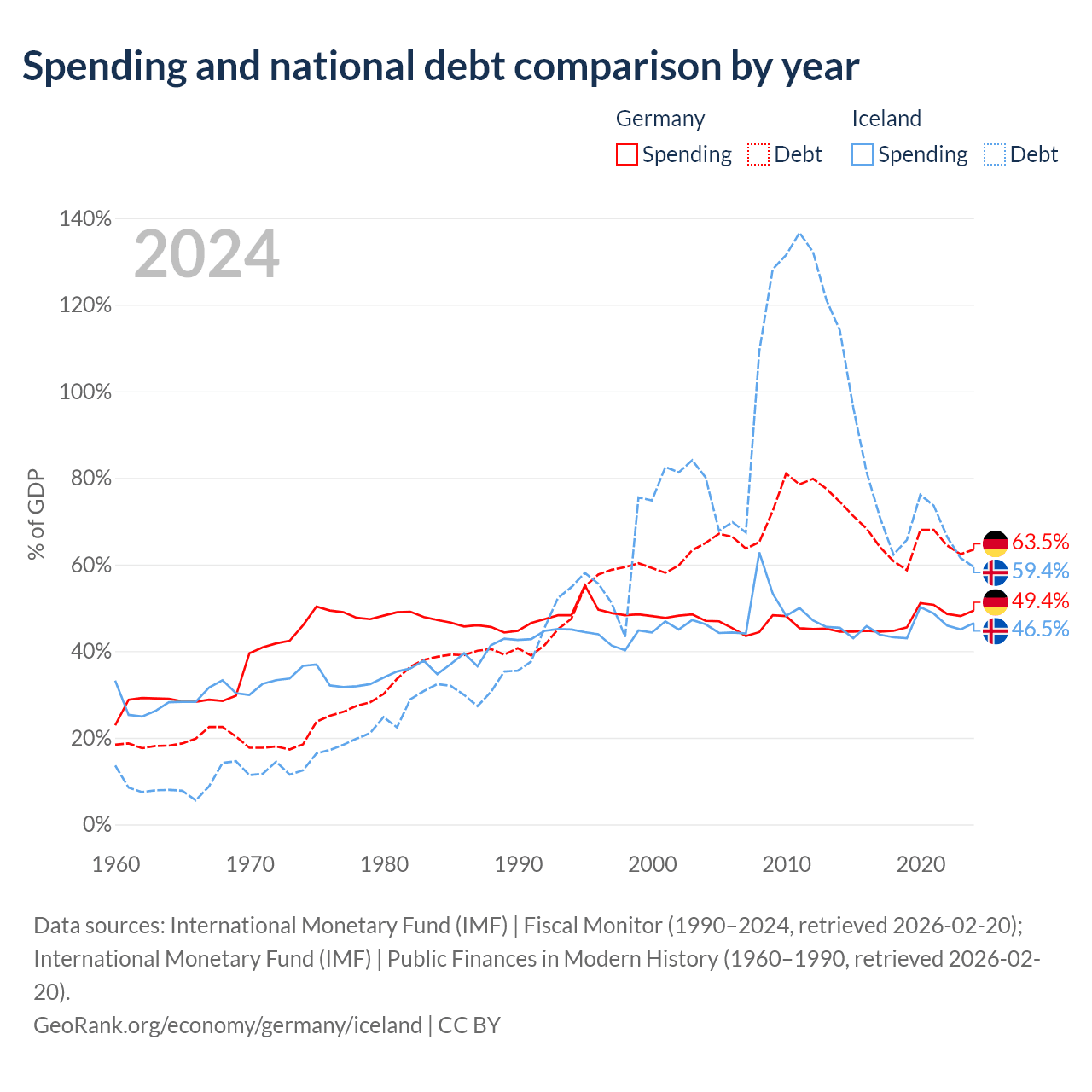 Germany has $2.97T in government debt (63.5% of GDP), compared to $19.8B (59.4% of GDP) in Iceland.