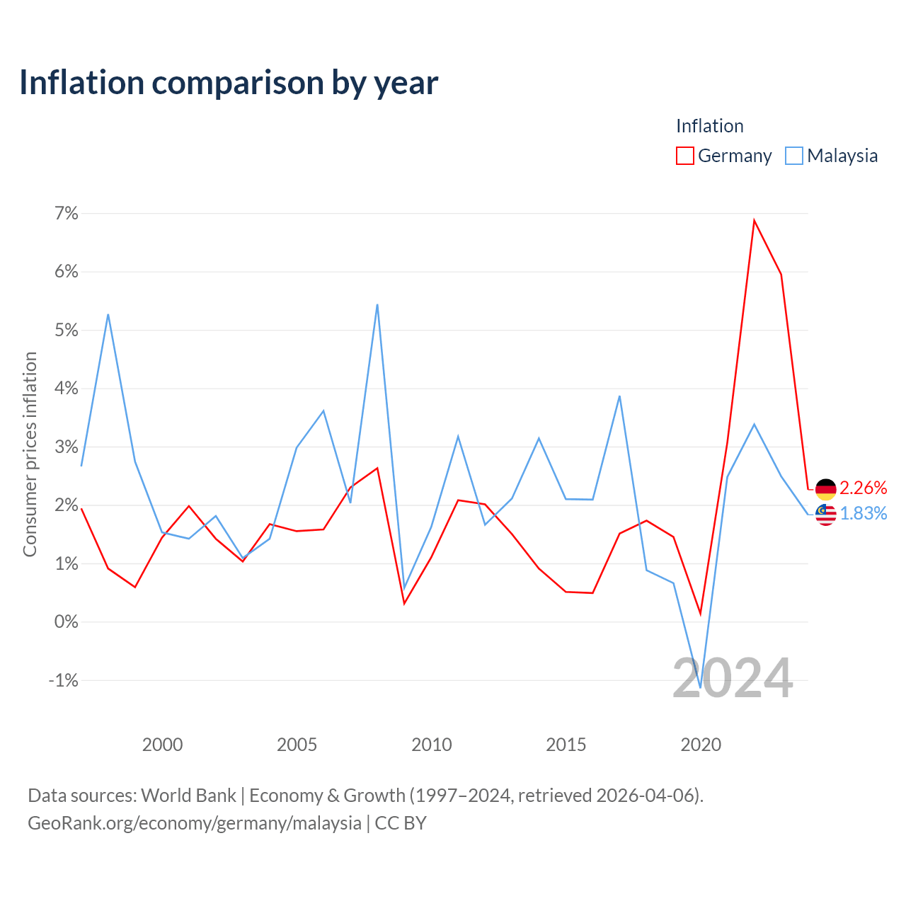 Data sources: World Bank | Economy & Growth (1960–2024, retrieved 2026-04-06).