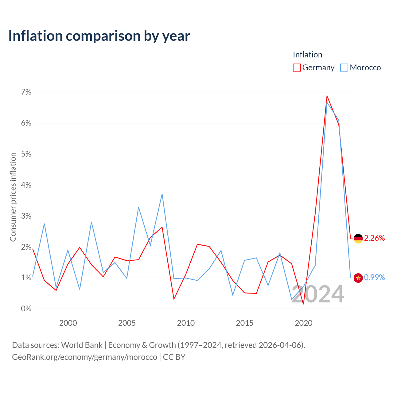Germany vs Morocco GDP by year