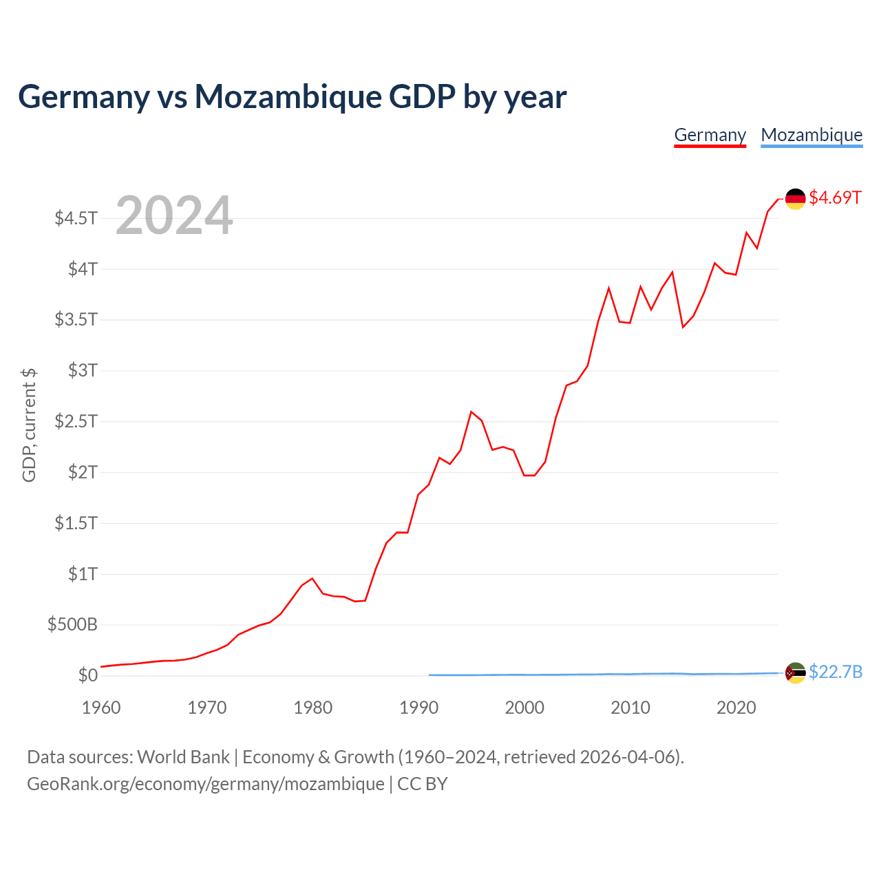 Germany vs Mozambique GDP by year