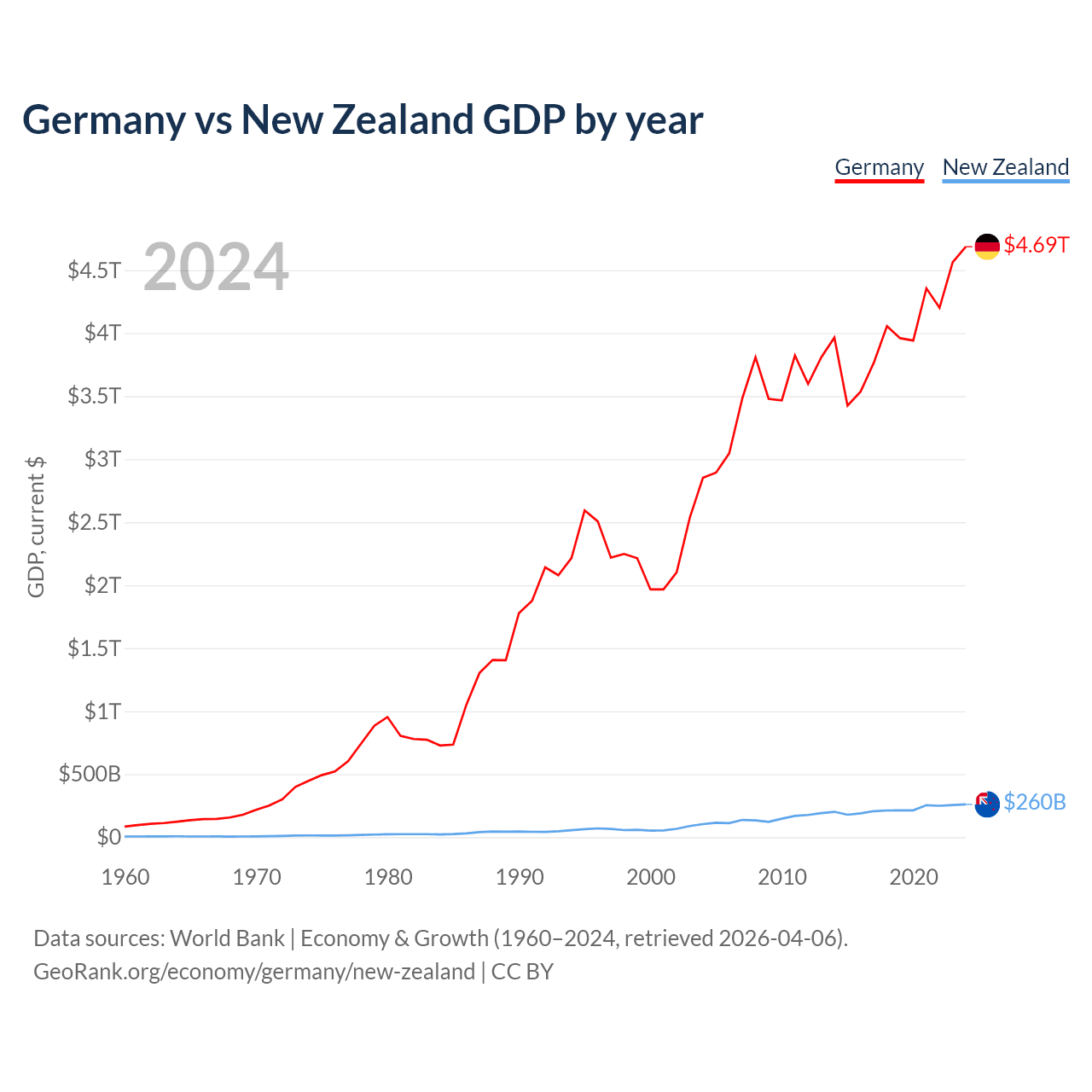 Germany vs New Zealand GDP by year