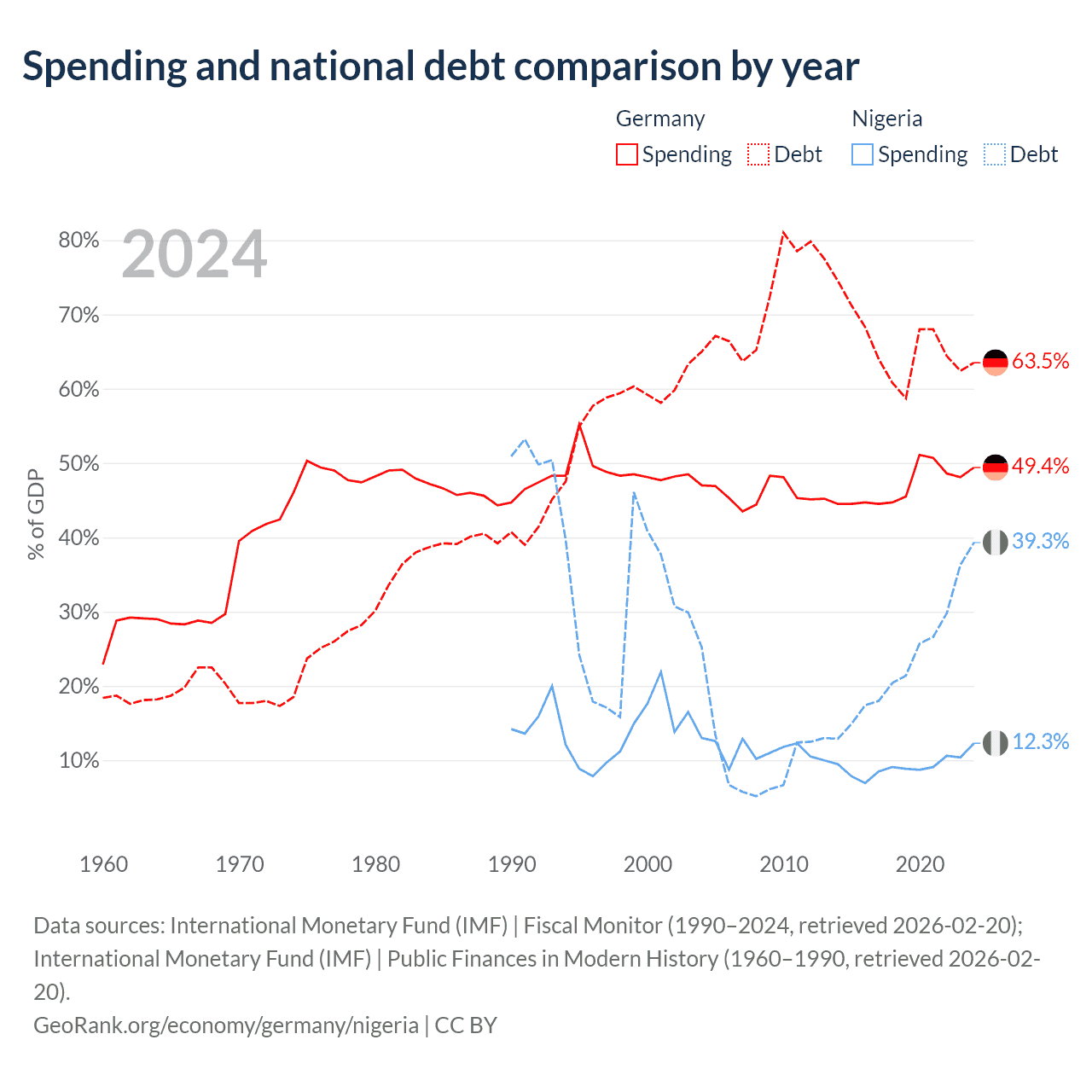 Germany has $2.97T in government debt (63.5% of GDP), compared to $99.2B (39.3% of GDP) in Nigeria.