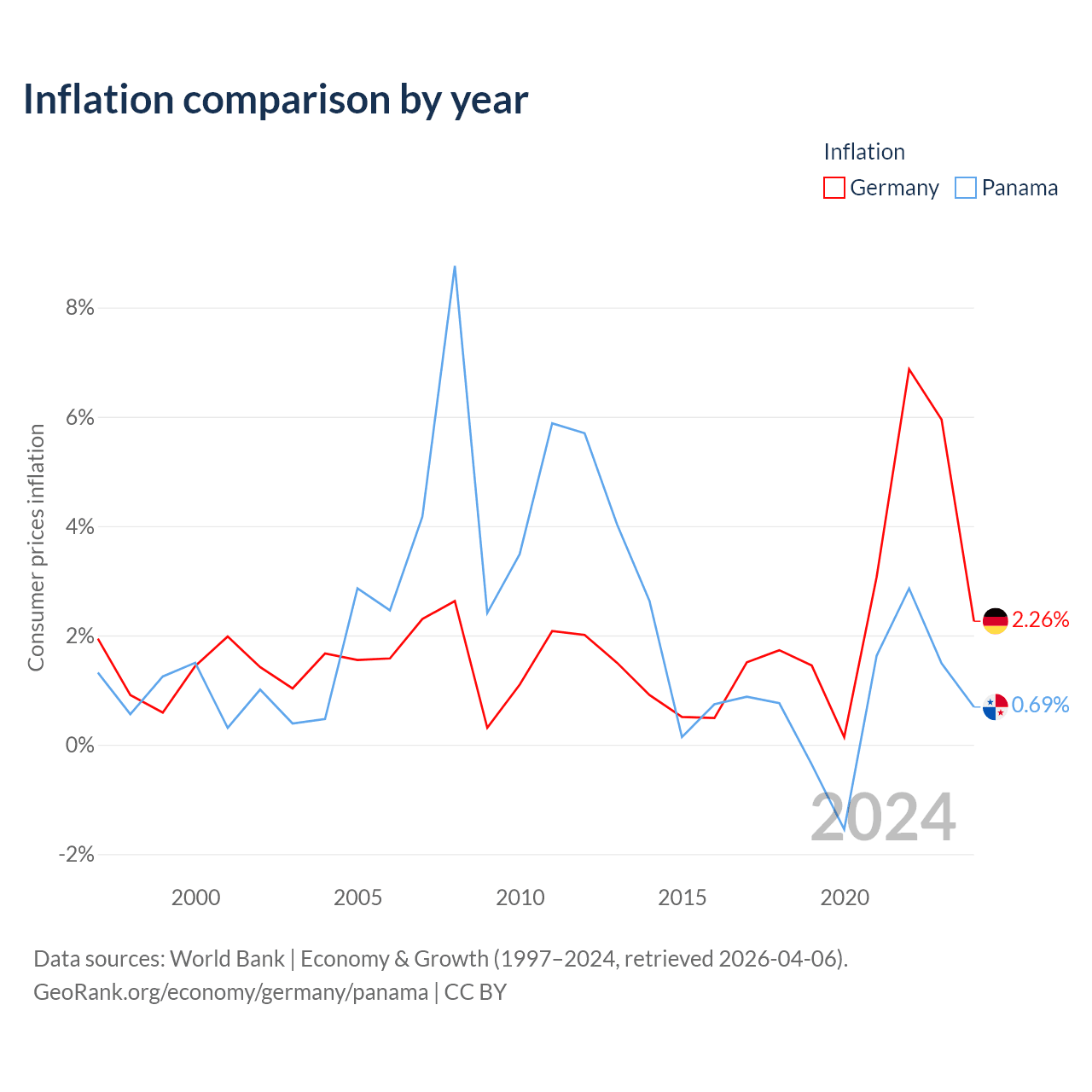Data sources: World Bank | Economy & Growth (1960–2024, retrieved 2026-04-06).