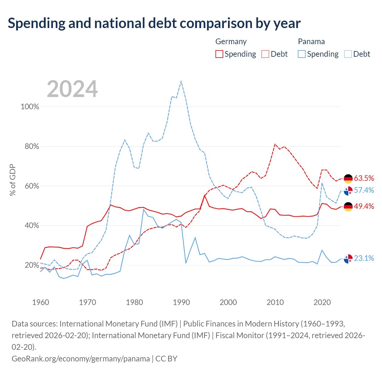 Germany has $2.97T in government debt (63.5% of GDP), compared to $49.6B (57.4% of GDP) in Panama.