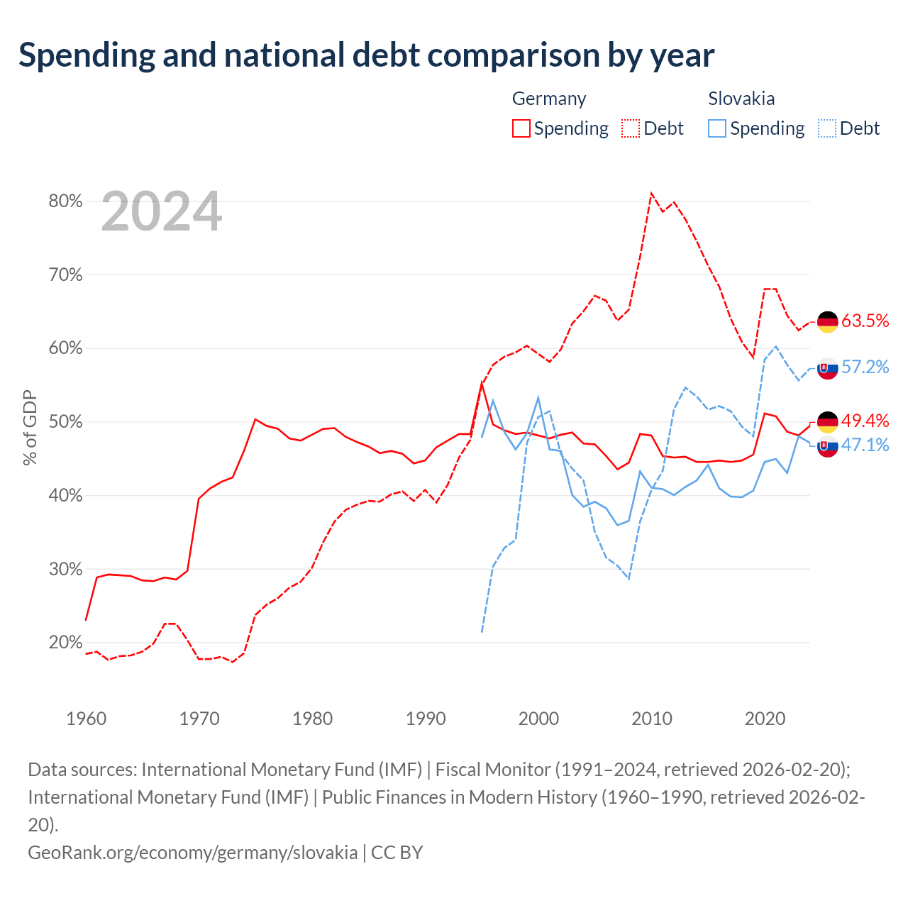 Germany has $2.97T in government debt (63.5% of GDP), compared to $80.7B (57.2% of GDP) in Slovakia.