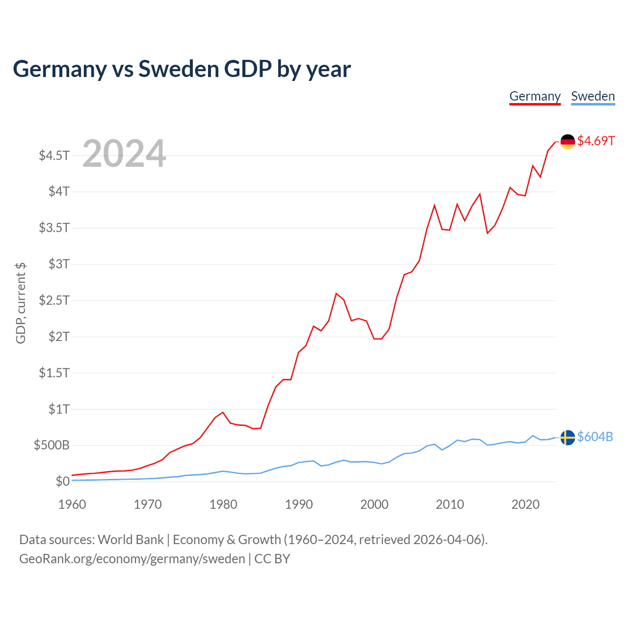 Germany vs Sweden GDP by year