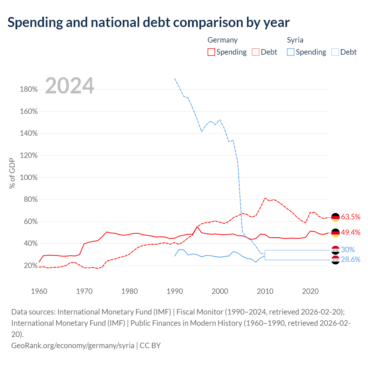 Germany has $2.97T in government debt (63.5% of GDP), compared to $18.4B (30% of GDP) in Syria.