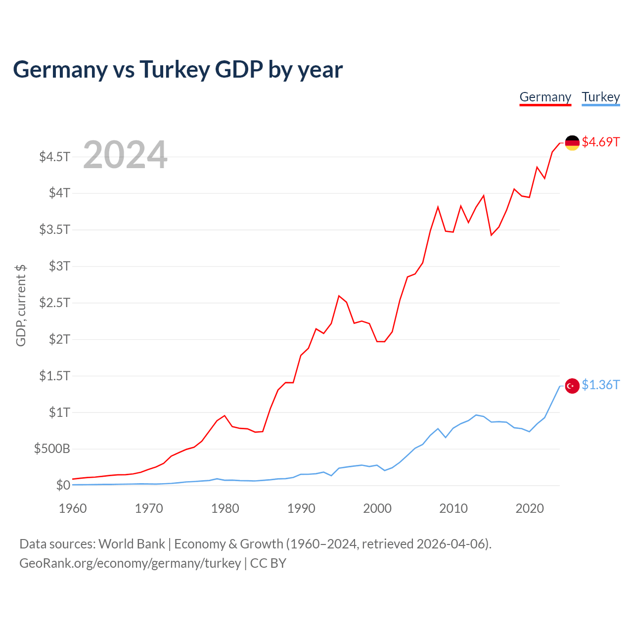 Germany vs Turkey GDP by year