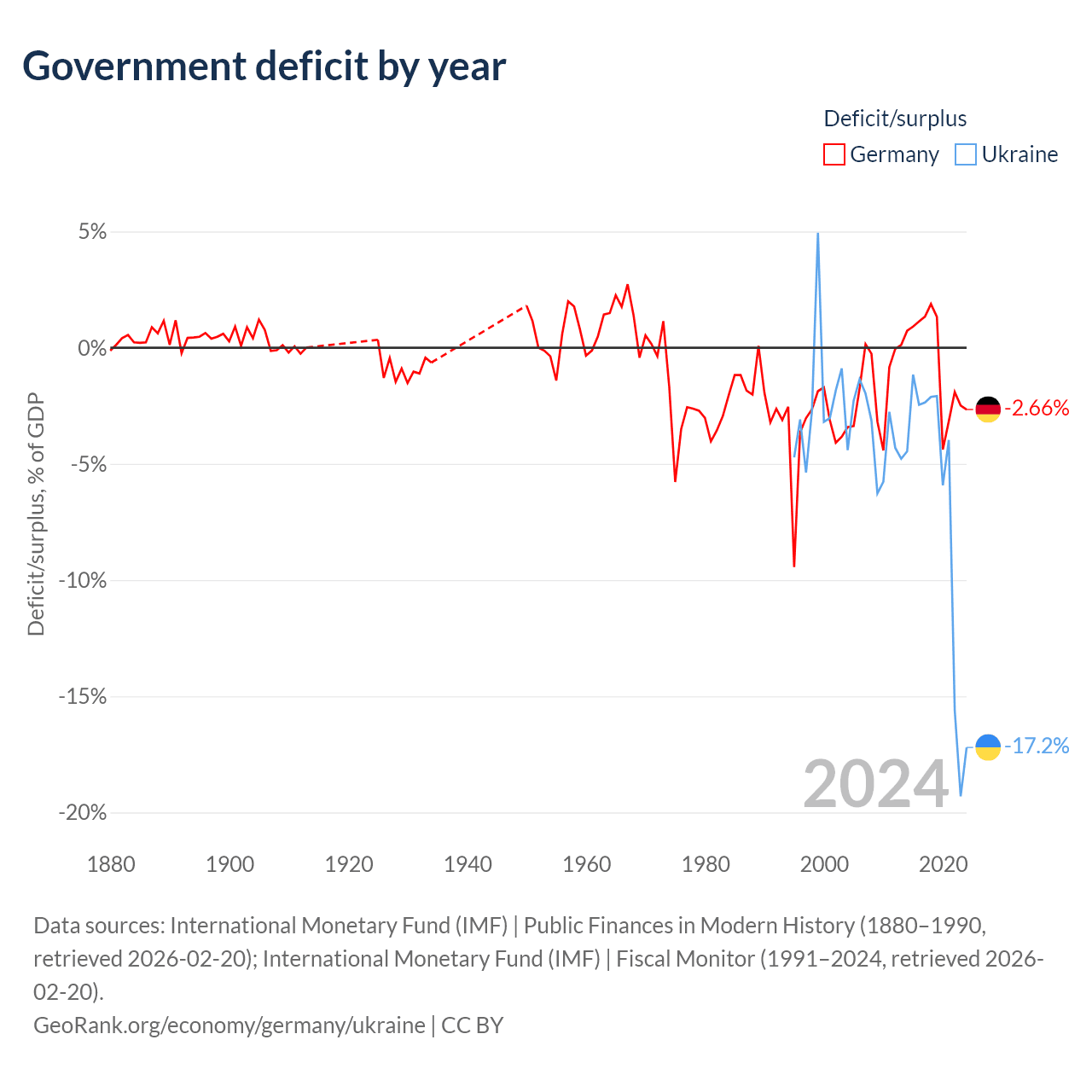 - International Monetary Fund (IMF) | Public Finances in Modern History (1880–1996, retrieved 2026-02-20)