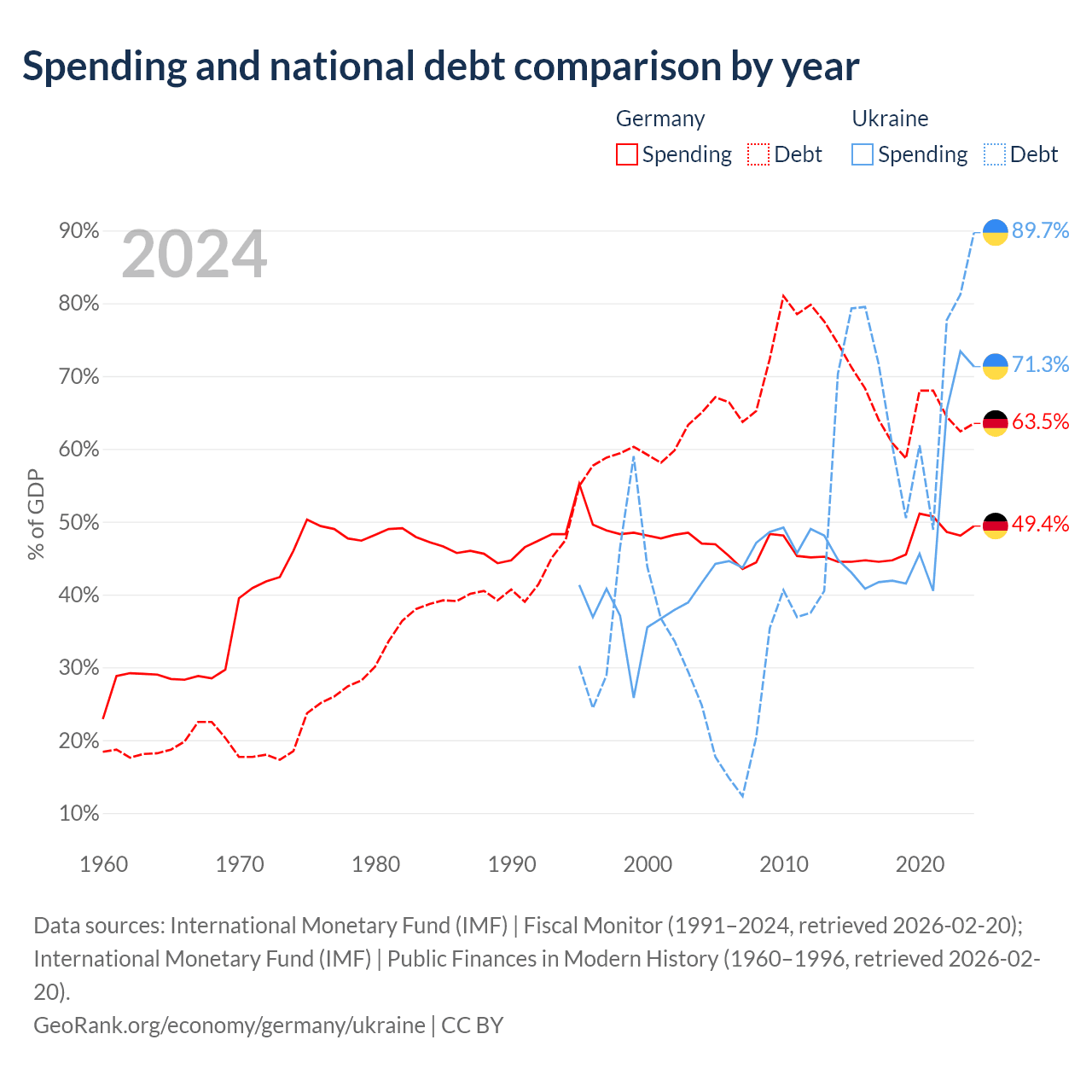 Germany has $2.97T in government debt (63.5% of GDP), compared to $171B (89.7% of GDP) in Ukraine.