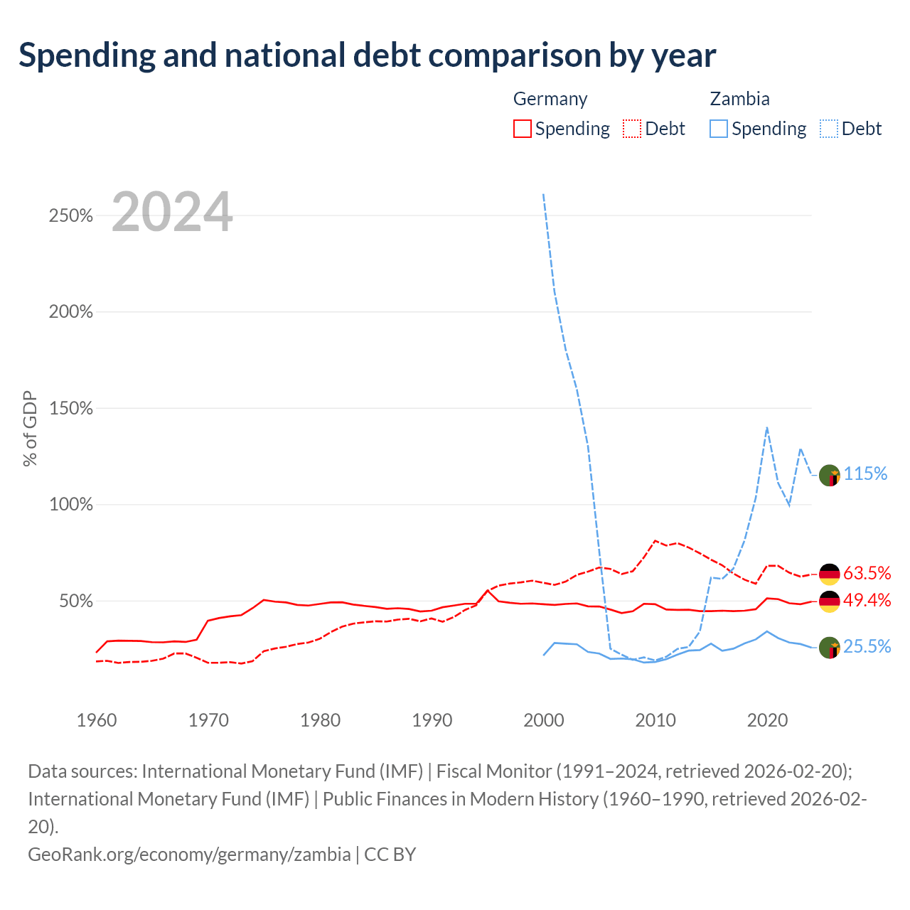 Germany has $2.97T in government debt (63.5% of GDP), compared to $29.1B (114.9% of GDP) in Zambia.