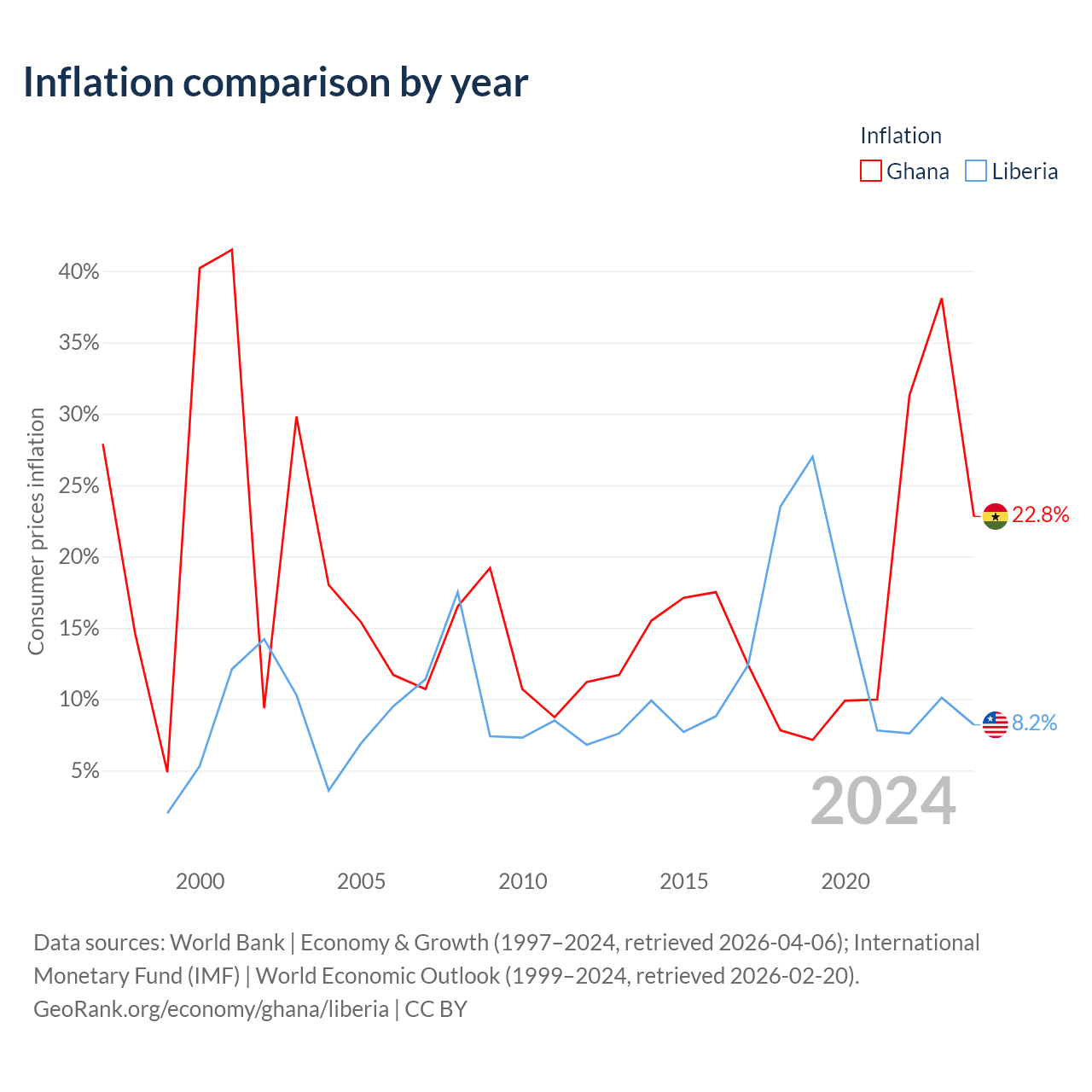 Ghana vs Liberia GDP by year