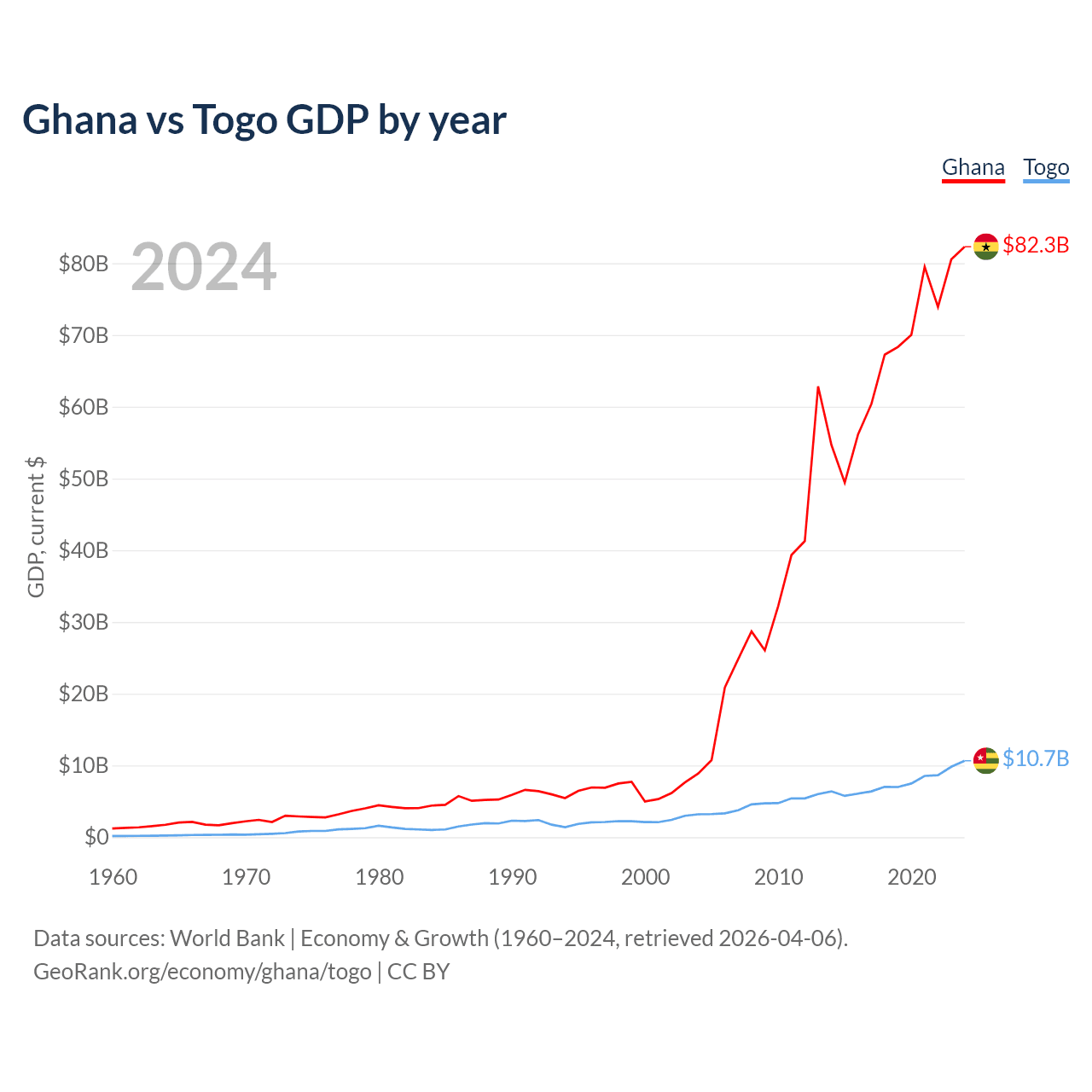 Ghana vs Togo GDP by year